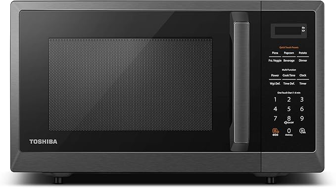 TOSHIBA ML2-EM09PA(BS) Small Countertop Microwave Oven With 6 Auto Menus, Kitchen Essentials, Mute Function & ECO Mode, 0.9 Cu Ft, 10.6 Inch Removable Turntable, 900W, Black Color