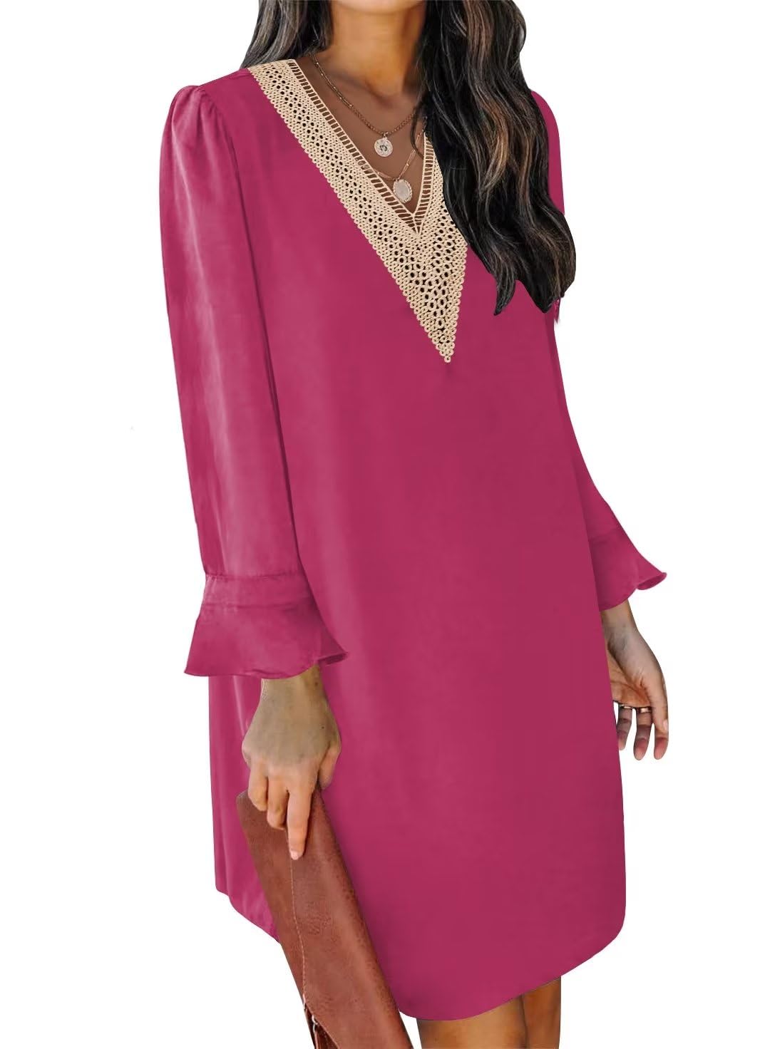 QACOHU Summer Dress for Women's V Neck Casual Loose Flowy Swing Shift Dress Rose L