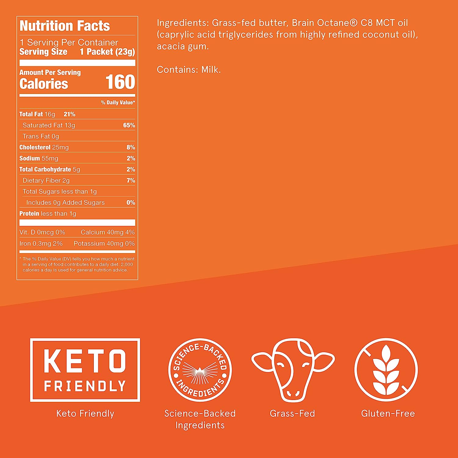 • Grass-fed butter makes your coffee rich and creamy. Brain Octane C8 MCT Oil is sourced from 100% coconut oil and delivers fat-burning ketone energy