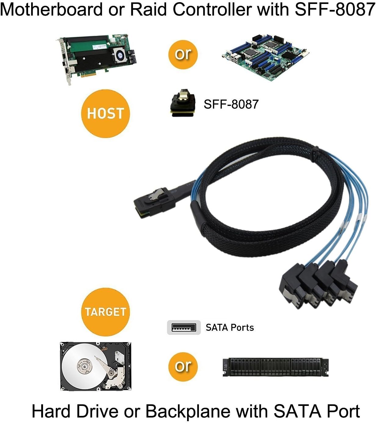 • Sff-8087 (36-pin internal mini-sas) TO four right angle 7-pin SATA