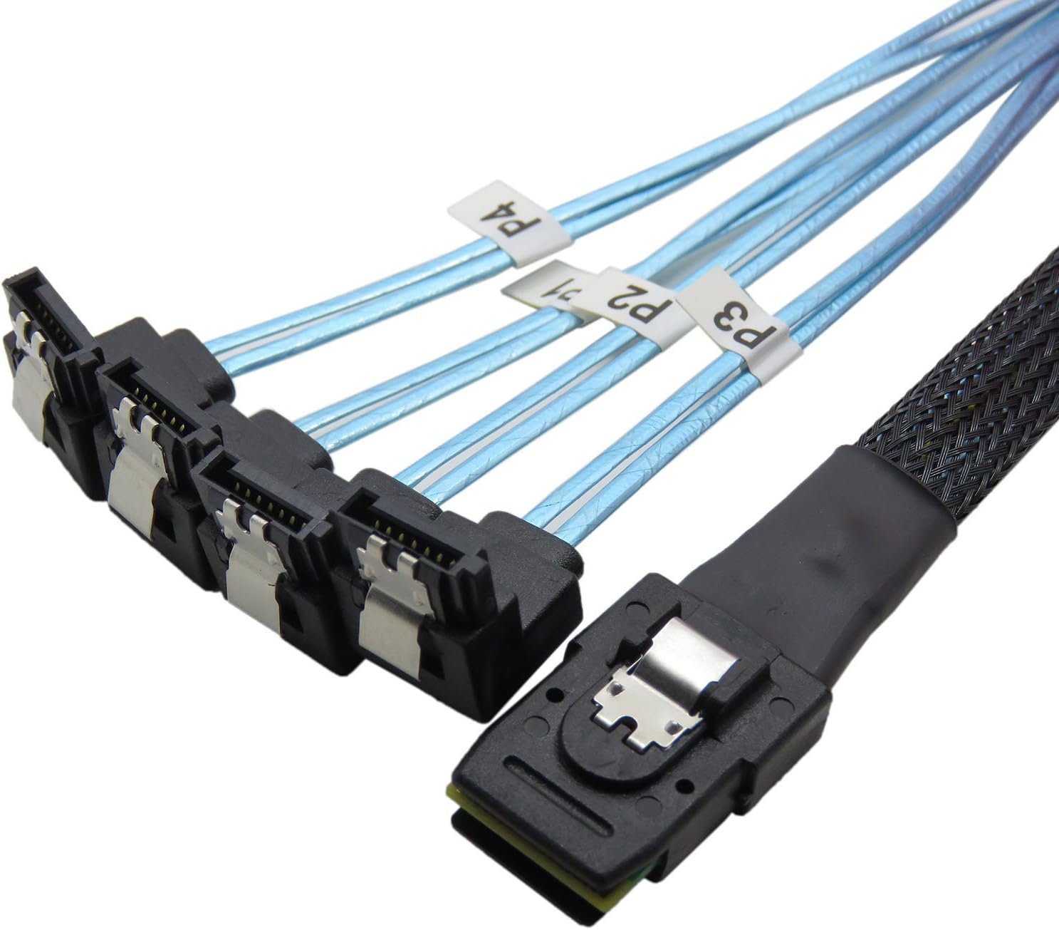 CableDeconn 18' Mini SAS 36P SFF-8087 To 4 SATA 7Pin 90 Degrees Target Hard Disk Data Cable 0.5M (H0304)