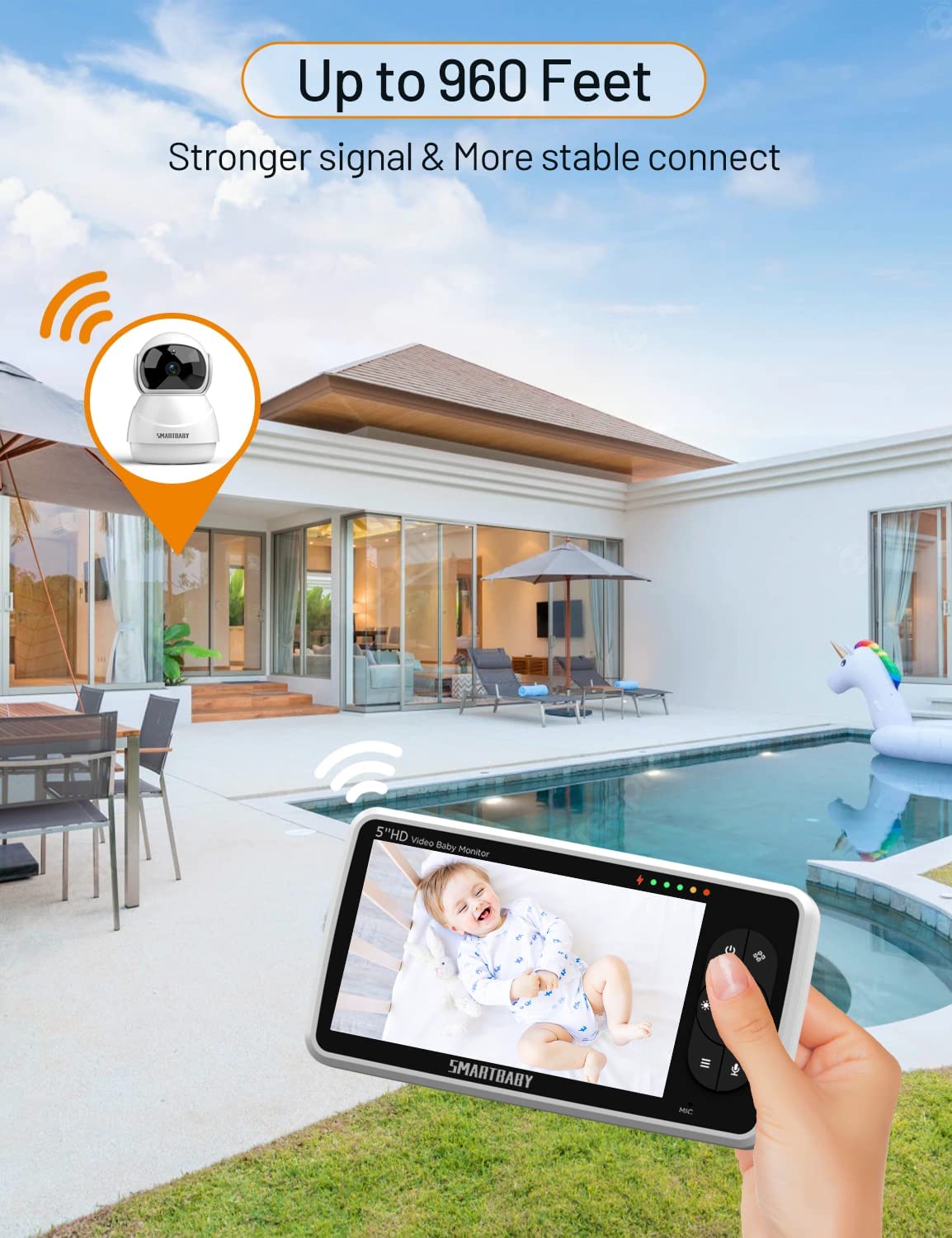 • Large battery capacity and long range: With up to 24 hours of video streaming on a single charge, this system lets you monitor your baby throughout the night easily. During the day, this monitor system's dependable long operation range up to 960 feet, lets you go about your day and stays connected with your baby from another room or even from the yard.This baby monitor no wifi ensure your privacy is maintained, by transmitting all the feed via a 2.4GHz channel with FHHS technology.