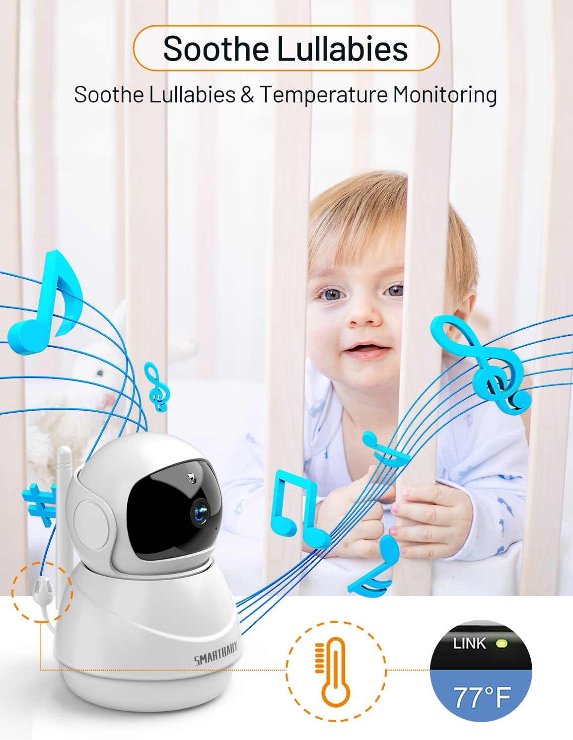 • Soothe and comfort your baby: Let us introduce you to a straight forward and easy way to monitor your baby without stress. Our premium baby monitor with camera and audio has lullaby features and two-way talk to keep your baby soothed as the play or sleep in their cribs. You can comfort your child using your voice and talk to them directly via the baby camera monitor.