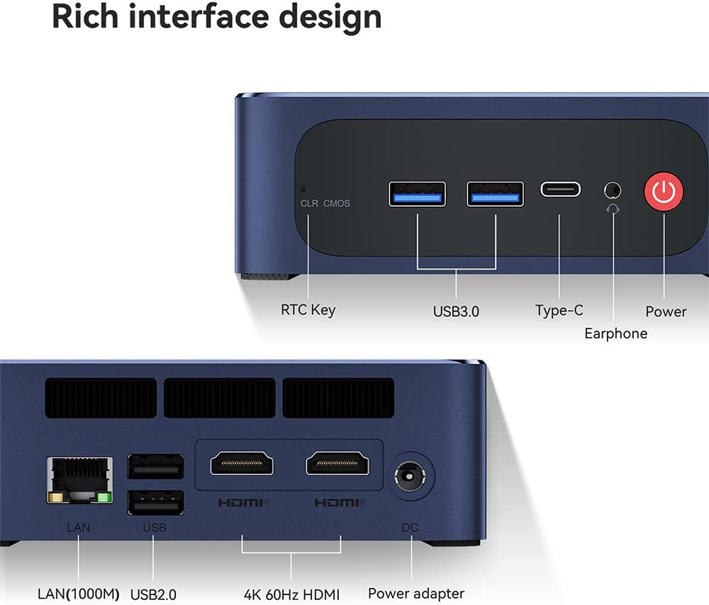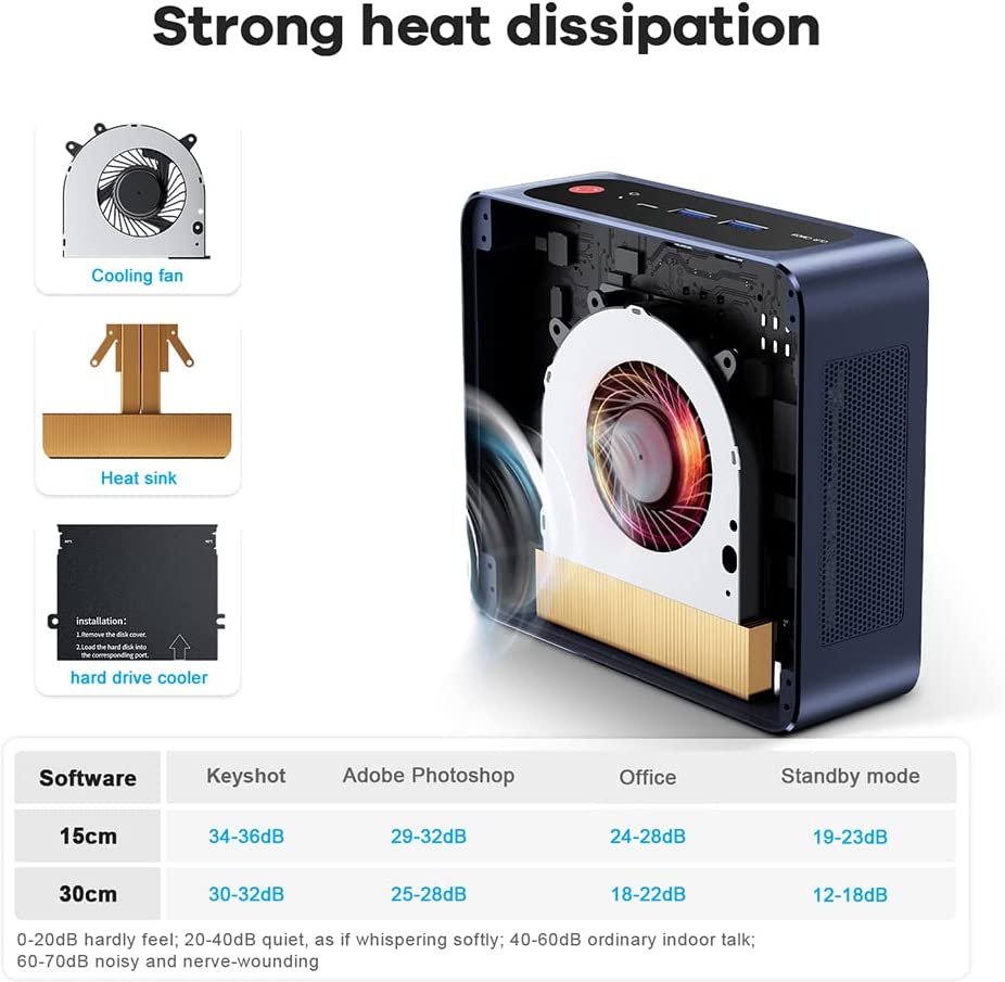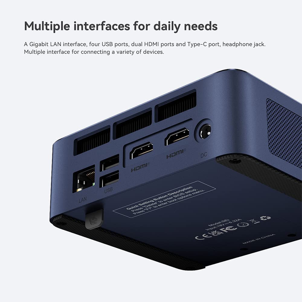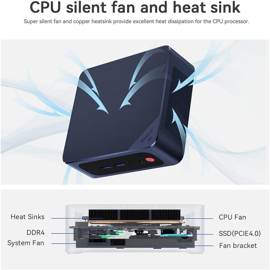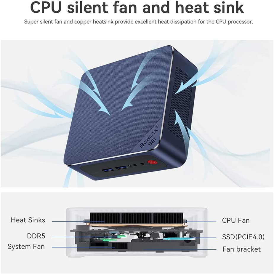 • 【Rich Interface & Efficient heat dissipation】Mini Desktop PC Beelink SEI8 28W High-Performance version, including Gigabit Ethernet LAN (RJ45 port)| WiFi and Bluetooth 5.0 combo (Supporting Gigabit file transfer speeds)USB 3.0*4,HDMI*2,Audio Jack (HP&MIC)*1,DC Jack*1,Type-C*1,Efficient heat dissipation cool down the computer's hardware, reduce hardware loss, and make the computer's response speed faster. with strong heat dissipation capacity, fast operation and quiet idle.