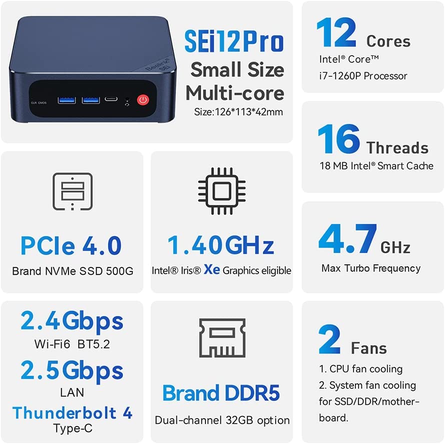 Beelink Mini PC SEI8 W-11 Pro 4 Cores Intel i5-8279U High Performance Mini Computer 16GB RAM 500GB NVMe M.2 SSD, Support 4K Dual HDMI,WiFi 5,BT5.0 Gigabit Ethernet Mini Desktop Computer