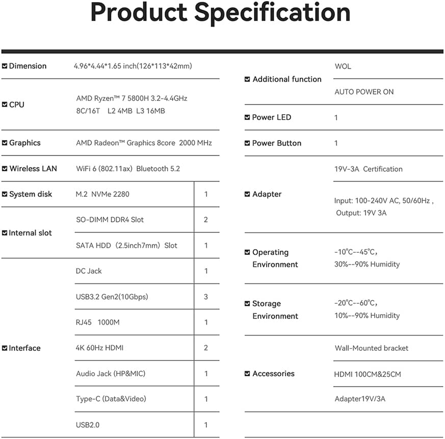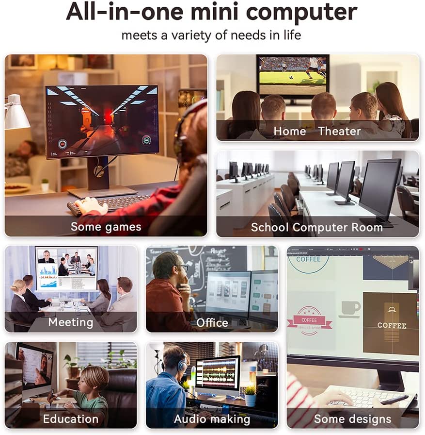 • 【W11 PRO & CAPACITY STORAGE】This Mini Computer comes with W11 without bloatware, so you can enjoy the latest version of OS. Driven by the AMD 7nm Processor and 16GB DDR4 Memory(can upgrade to 64GB, 2 x 32GB), 500GB NVME SSD, this High-Performance Mini PC designed by our talented European designers delivers enough power and storage for you to play, create and enjoy all day!