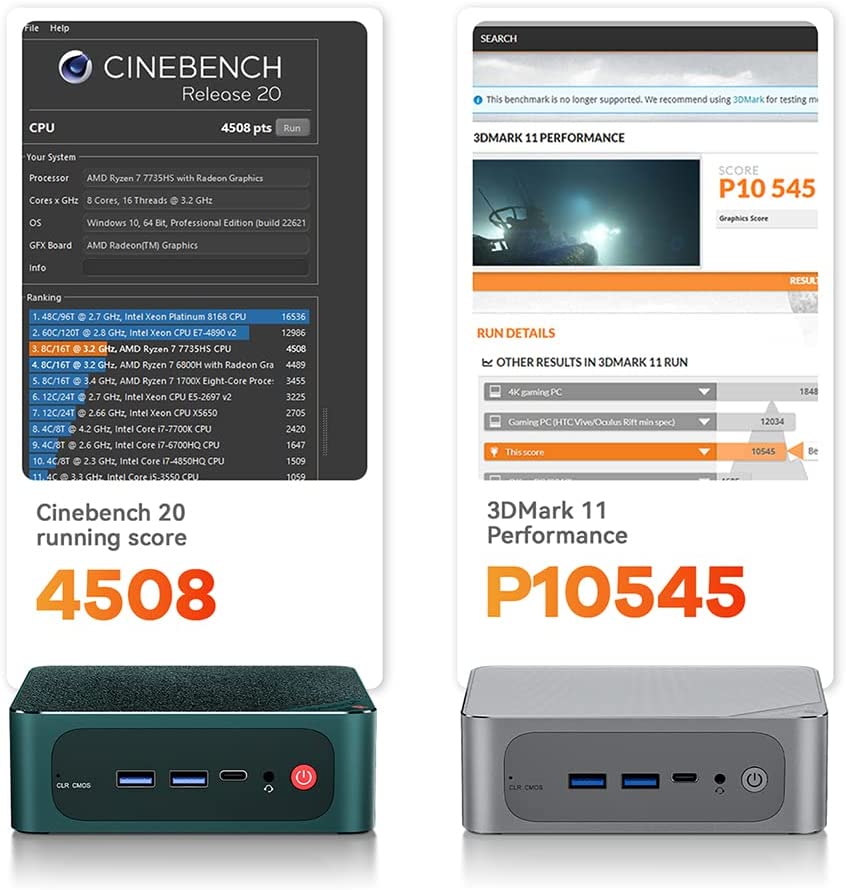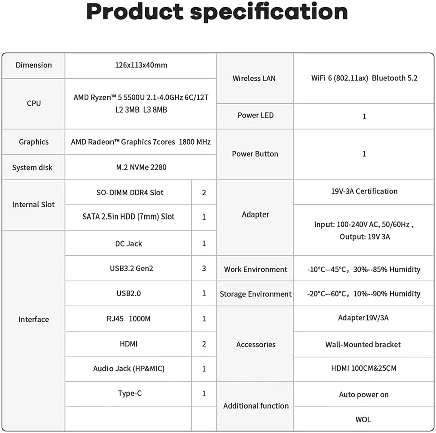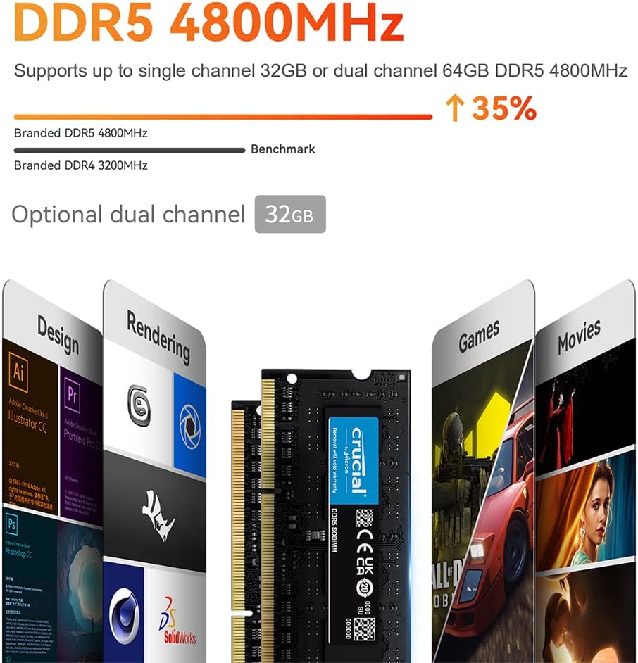 • ?【W11 PRO & CAPACITY STORAGE】This Mini Computer comes with W11 without bloatware, so you can enjoy the latest version of OS. Mini PC comes with the AMD 6nm Processor, 32GB DDR5 Memory(4800MHz, can upgrade to 64GB, 2 x 32GB), and 500GB M.2 2280 NVMe SSD(PCIe Gen4.0 Max Read 3500MB/s). This High-Performance Mini PC designed by our talented European designers delivers enough power and storage for you to play, create and enjoy all day!