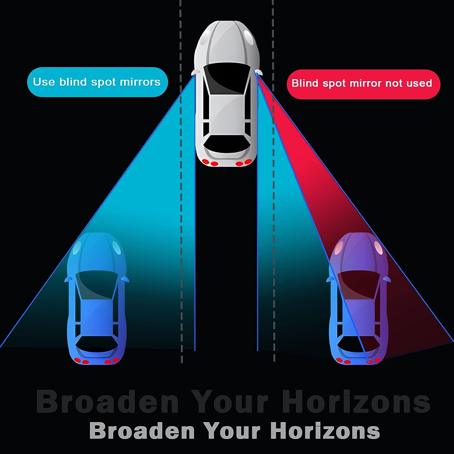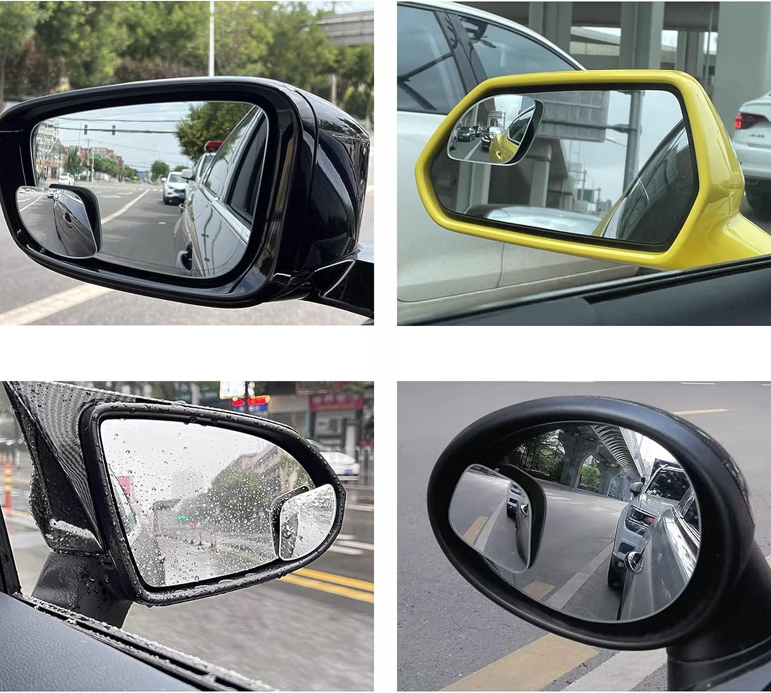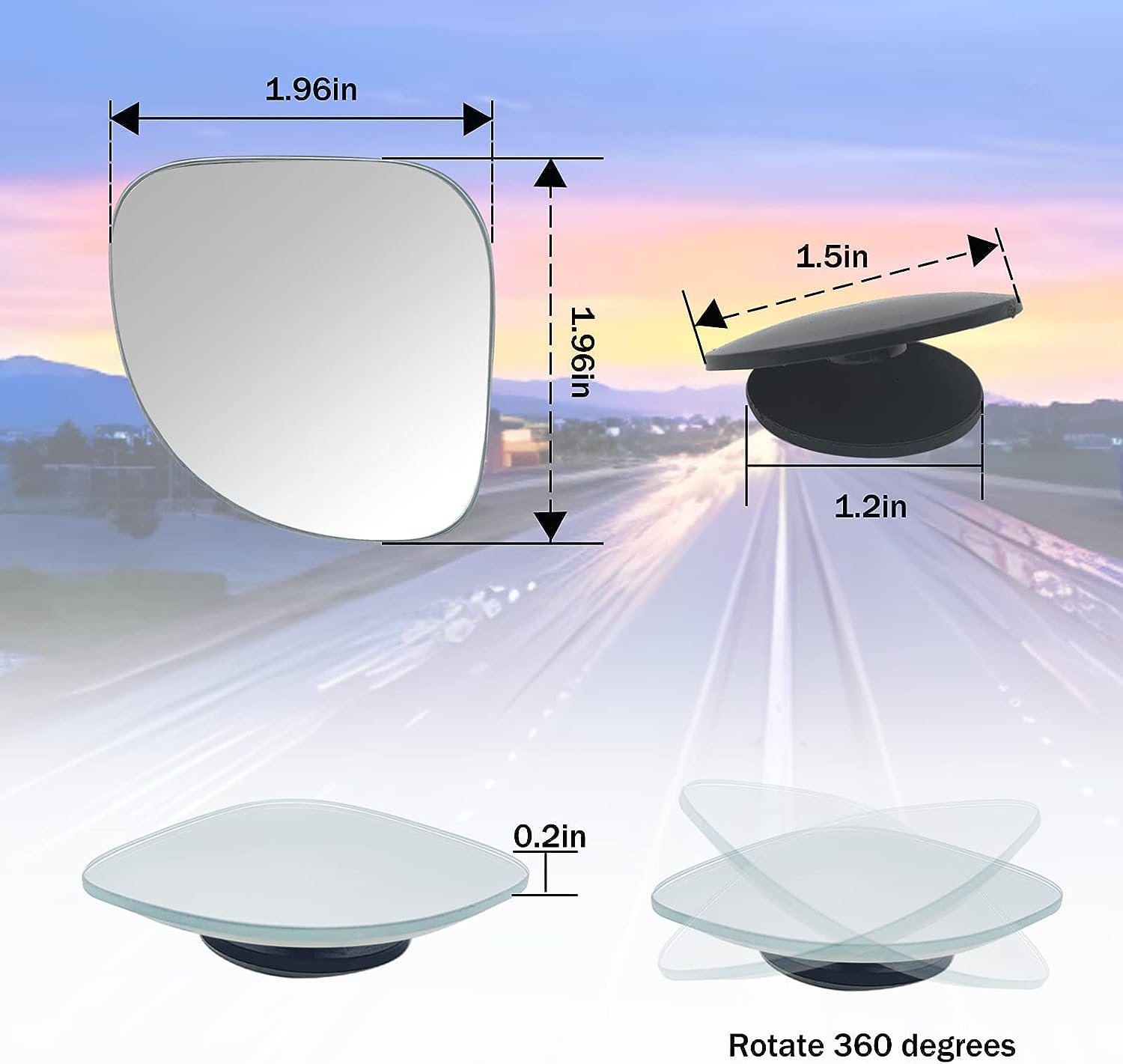 1: Blind spot mirrors are a "must have" for drivers, taxis and any car owner. It can effectively help you avoid dreaded blind spots. When passing lanes, changing lanes or merging into highways, or even reversing and parking, the blind-spot mirrors give you the confidence and ability to do so effortlessly.