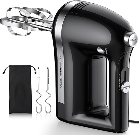 Electric Hand Mixer, Powerful Hand Mixer Electric Handheld with Whisk, Dough Hook, Hand Held Mixer for Baking Cakes, Eggs, Cream Food Black