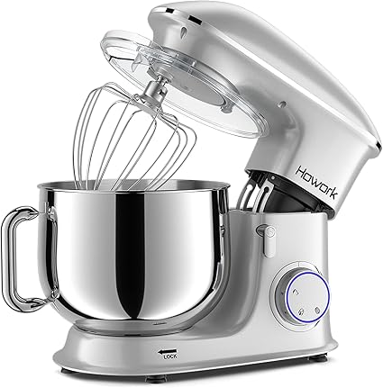 HOWORK 8.5QT Stand Mixer, 660W 6+P Speed Tilt-Head, Electric Kitchen Mixer With Dishwasher-Safe Dough Hook, Beater, Wire Whip & Pouring Shield(8.5 QT, Silver)