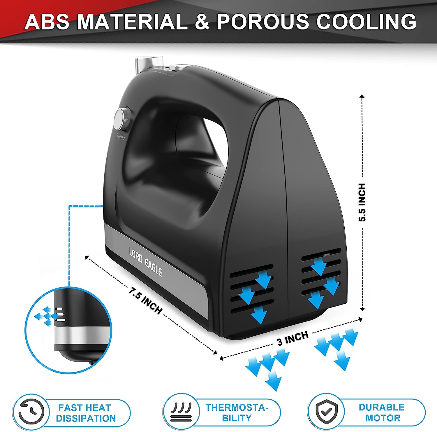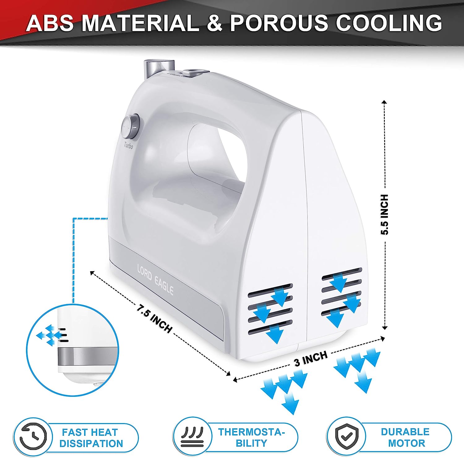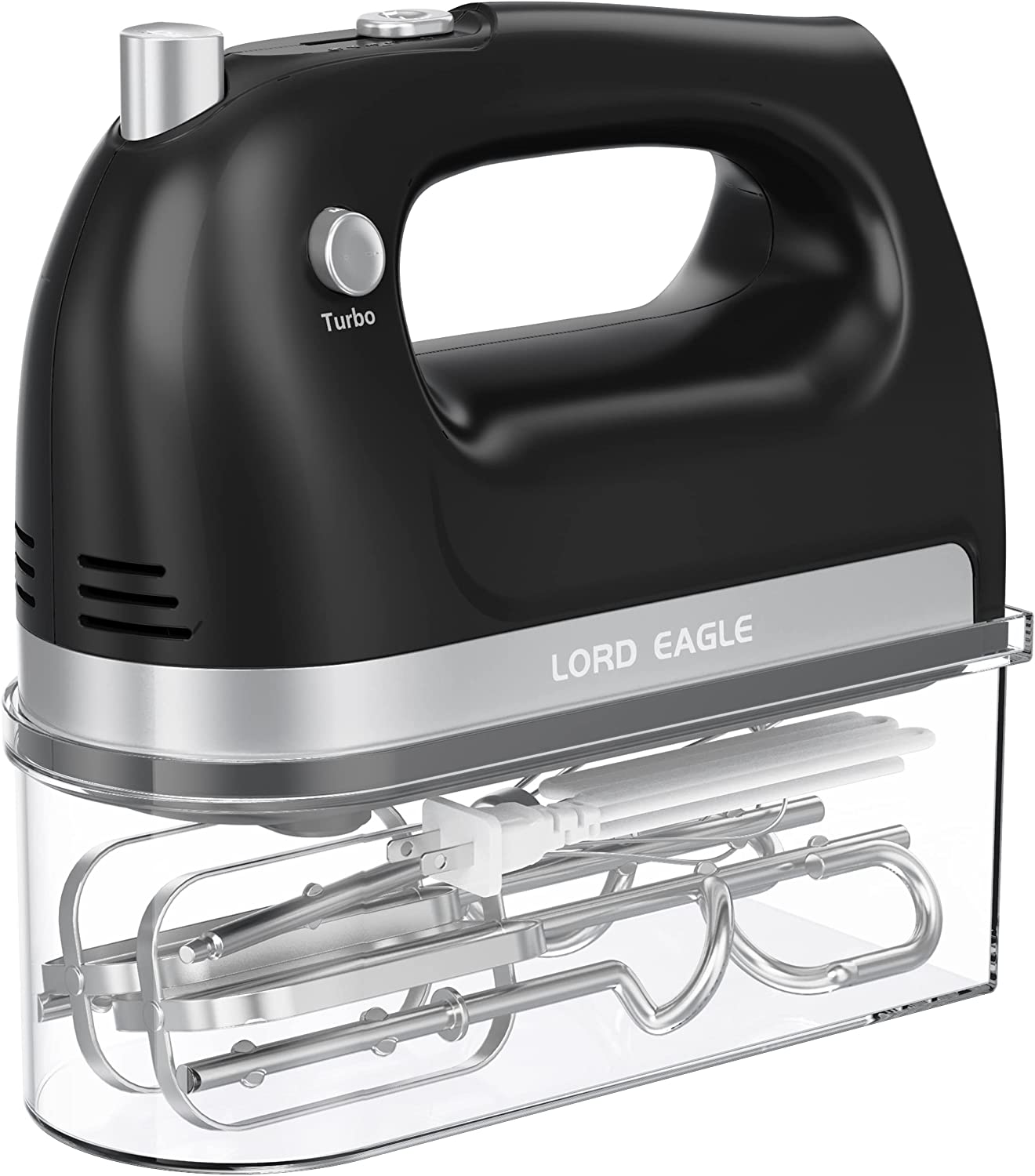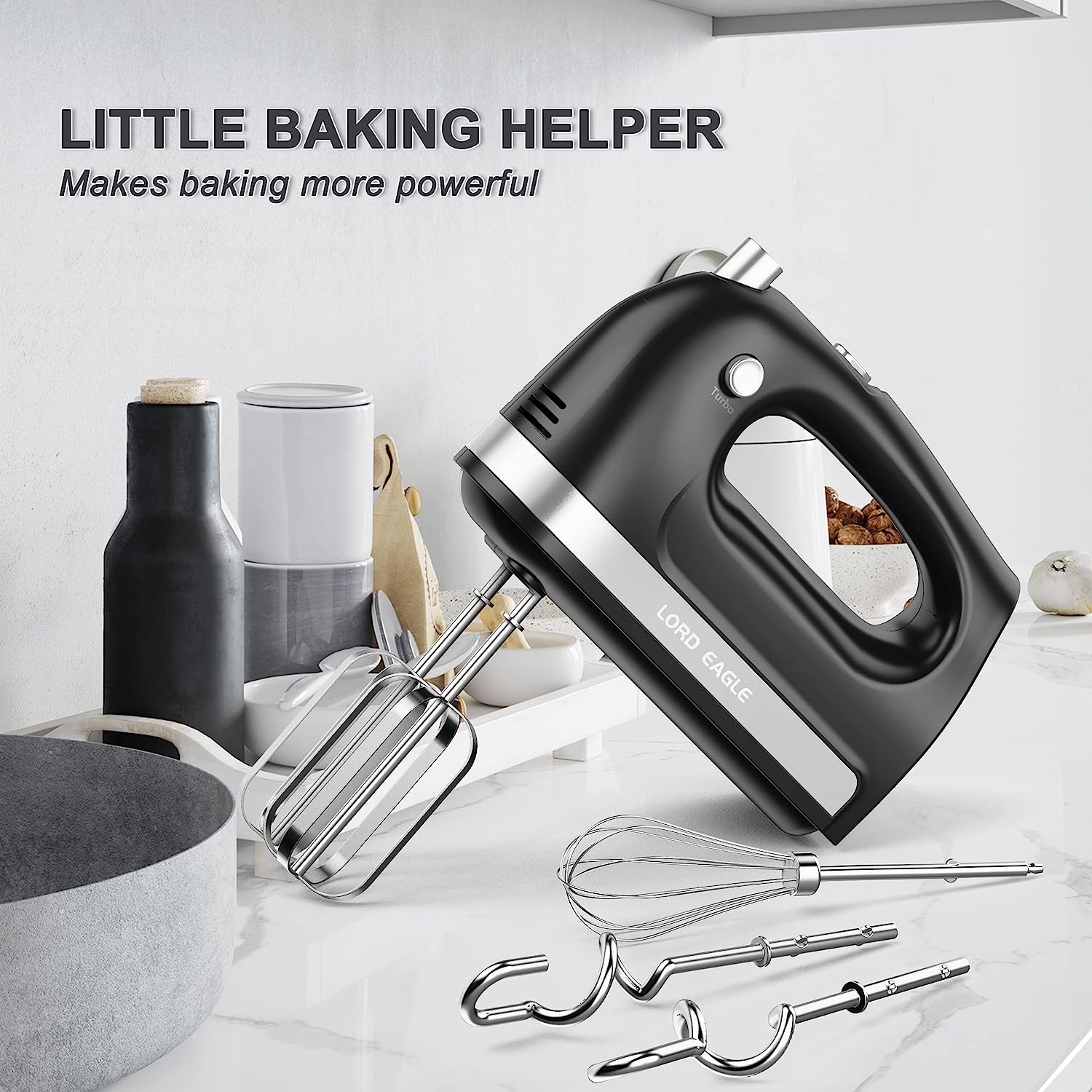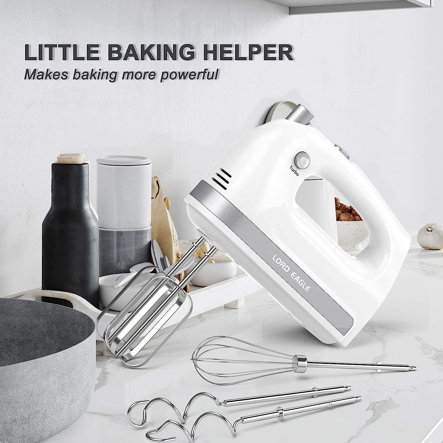 Lord Eagle Hand Mixer Electric, 400W Power handheld Mixer for Baking Cake Egg Cream Food Beater, Turbo Boost/Self-Control Speed + 5 Speed + Eject Button + 5 Stainless Steel Accessories