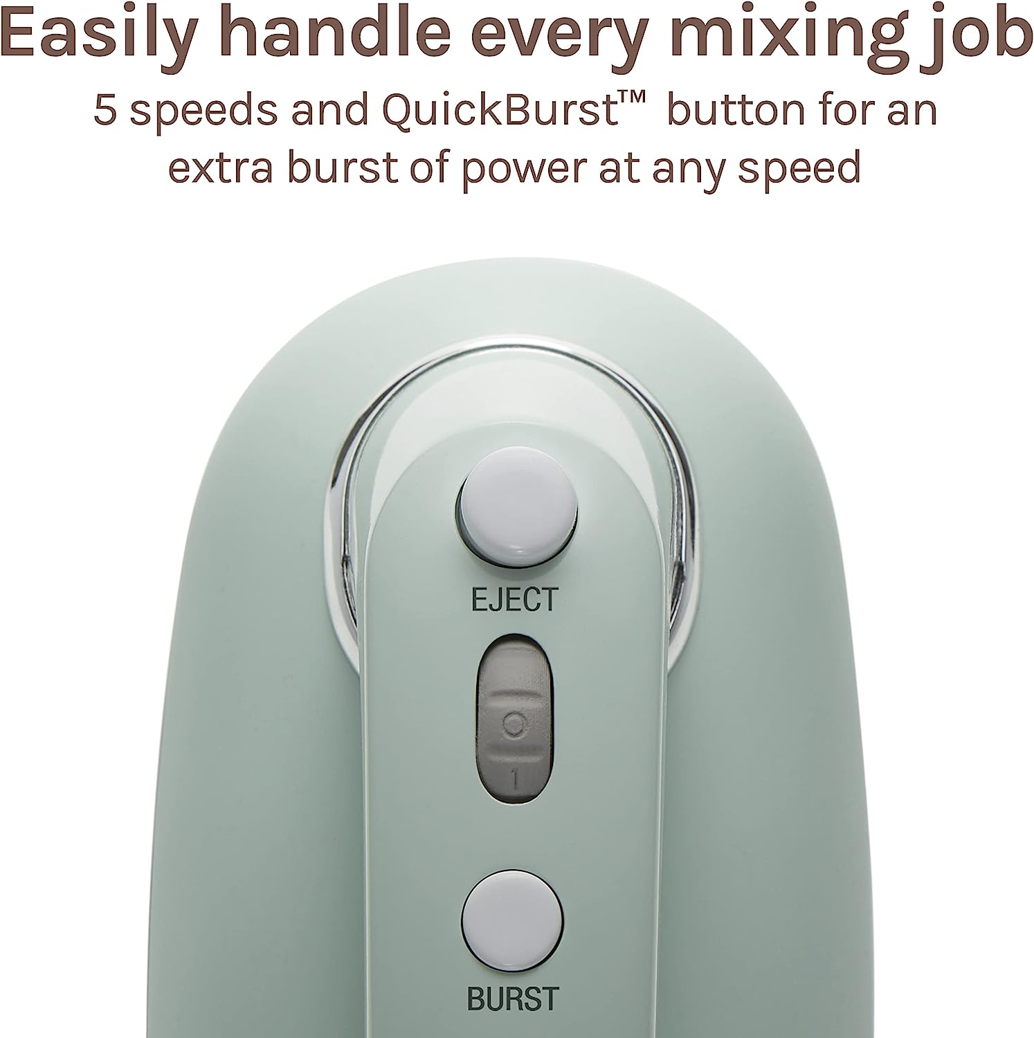 Magnolia Bakery 5-Speed Electric Hand Mixer by Hamilton Beach, Powerful 1.3 Amp DC Motor for Effortless Mixing & Consistent Speed in Thick Ingredients, Slow Start, Beaters and Whisk, Green (62601)