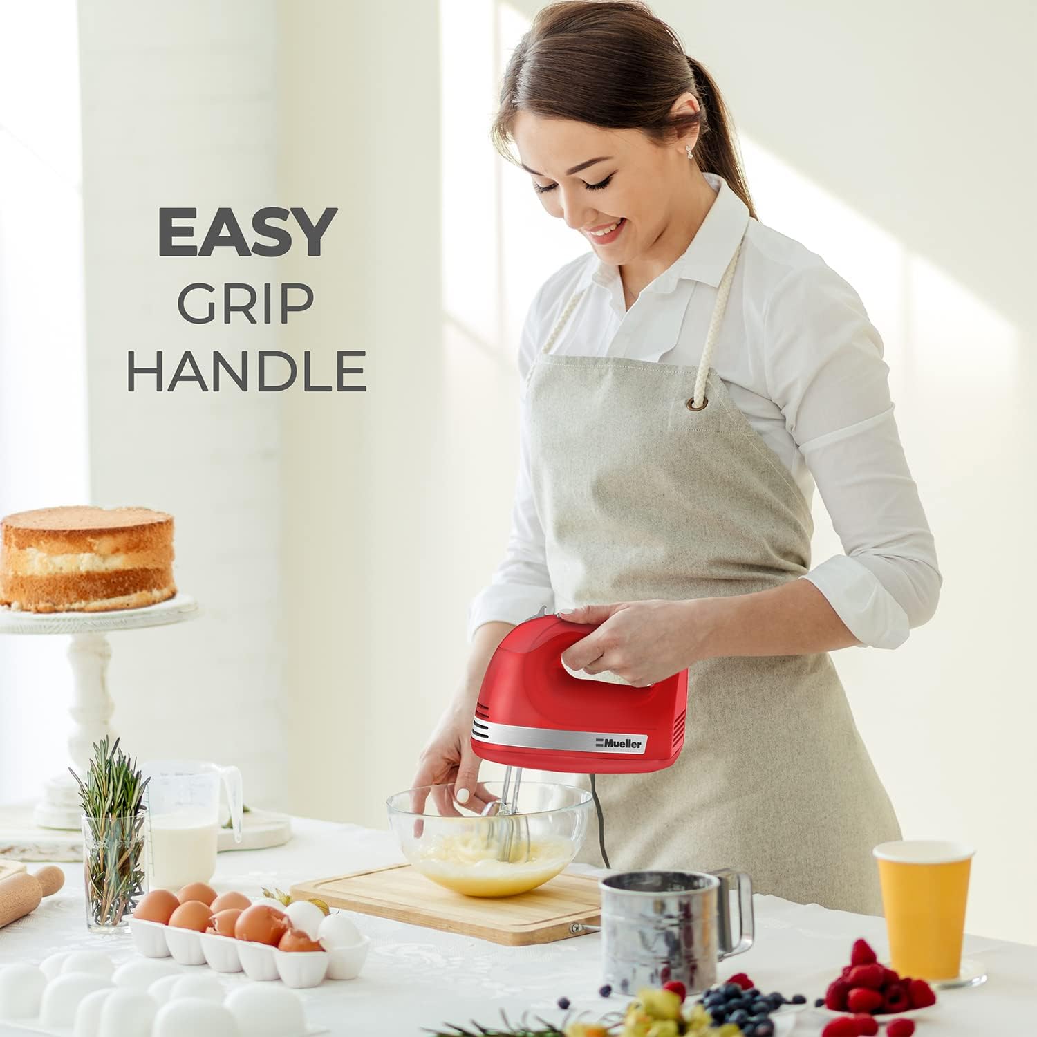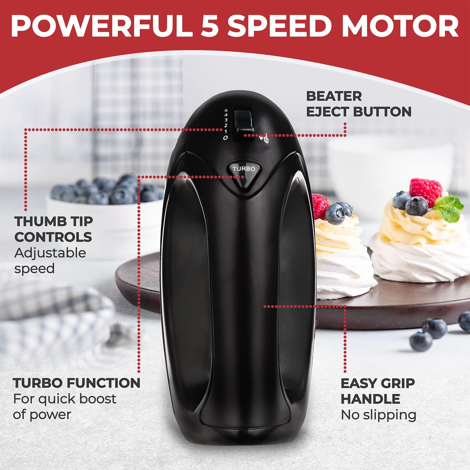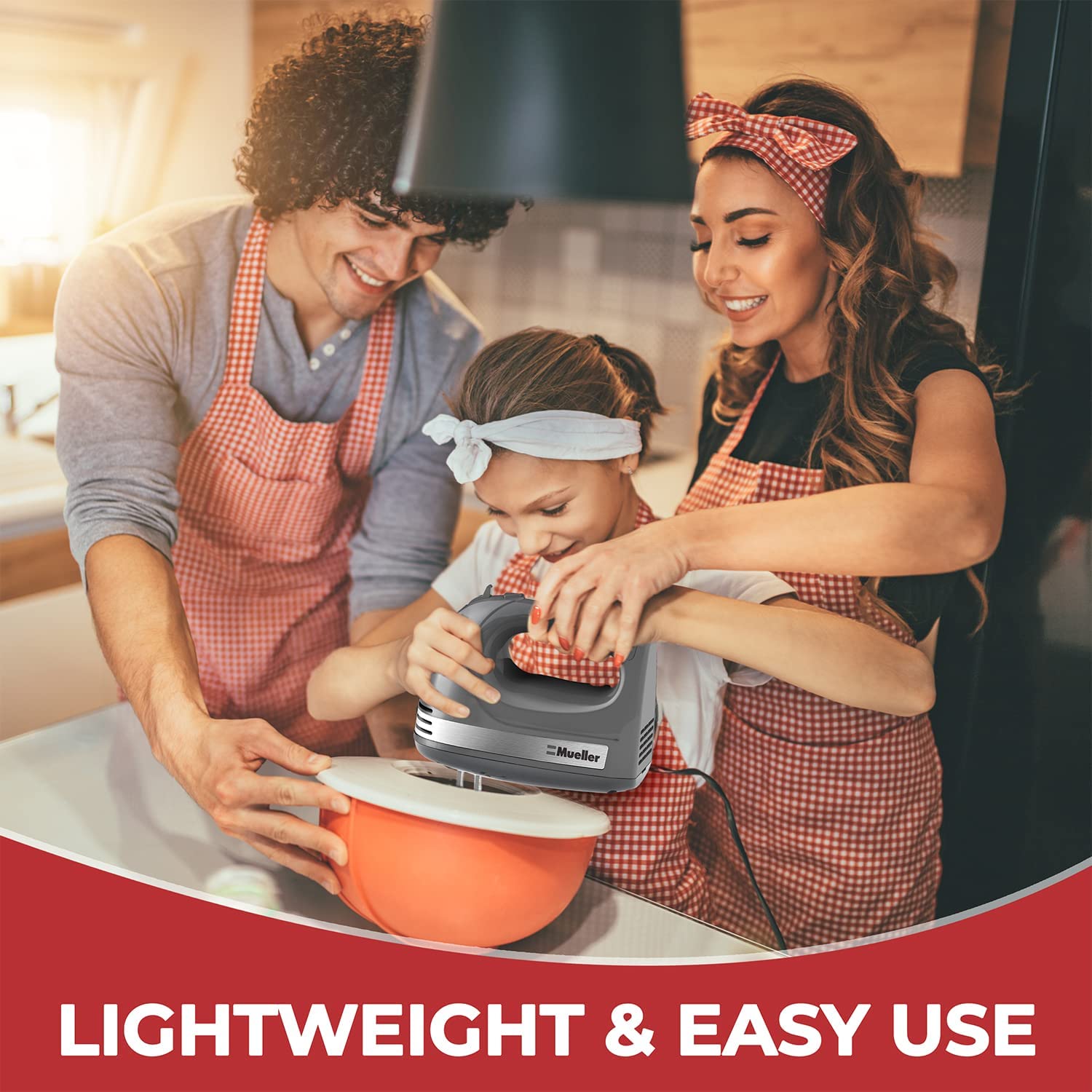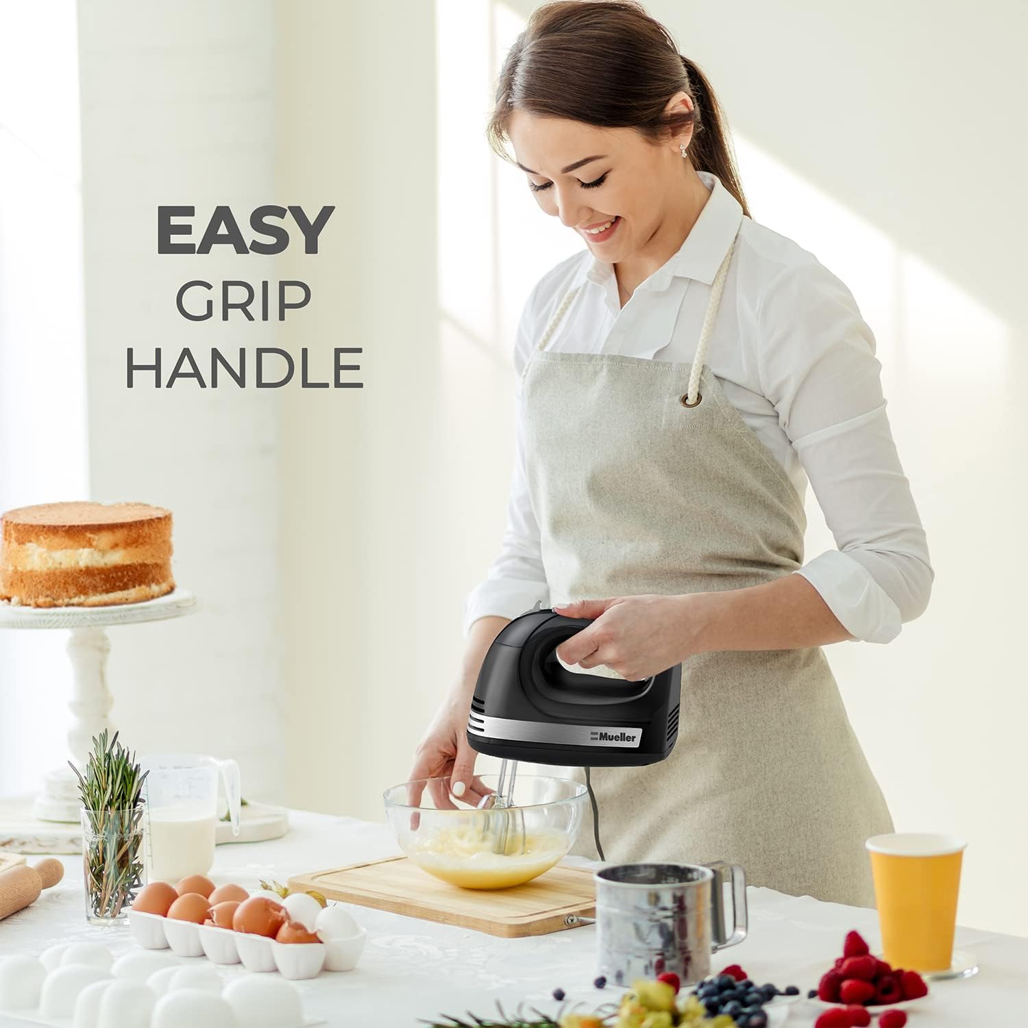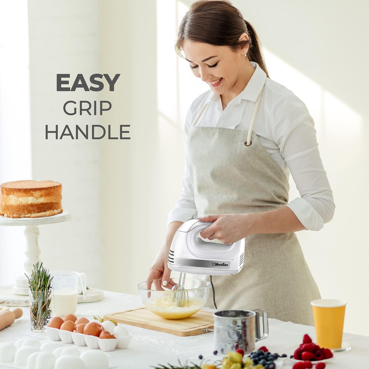Mueller Electric Hand Mixer, 5 Speed 250W Turbo with Snap-On Storage Case and 4 Stainless Steel Accessories for Easy Whipping, Mixing Cookies, Brownies, Cakes, and Dough Batters