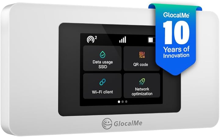 GlocalMe DuoTurbo 4G LTE Portable WiFi Hotspot for Travel in 200+ Countries, Mobile Hotspot Device with Global 1.1GB Data 30Days, SIMFREE and Dual Modem, 10 Devices Connected(White)