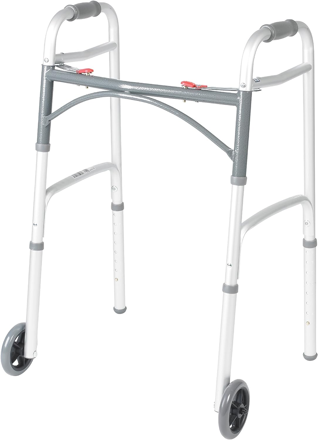 When searching for a safe, convenient aid for performing daily activities, a front-wheel walker can be the ideal solution. Drive's new lightweight folding walkers offer superior strength and durability while remaining lightweight and easy to use. Our rolling walkers feature a unique push-button mechanism for easy folding. Our standing walker’s U-shaped frame offers greater clearance, while its enhanced cross-frame design provides the user with enhanced stability. This front-wheeled walker features 5" wheels and newly designed rear glide caps designed for use on many types of terrain, while a contoured hand grip and adjustable height settings make this indoor and outdoor walker extra comfortable to use. Backed by a limited lifetime warranty from Drive Medical, a leading brand of mobility aids and other medical goods for more than 20 years, you can purchase with confidence.
