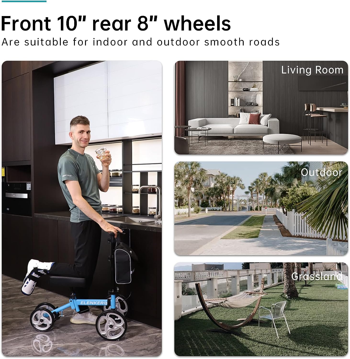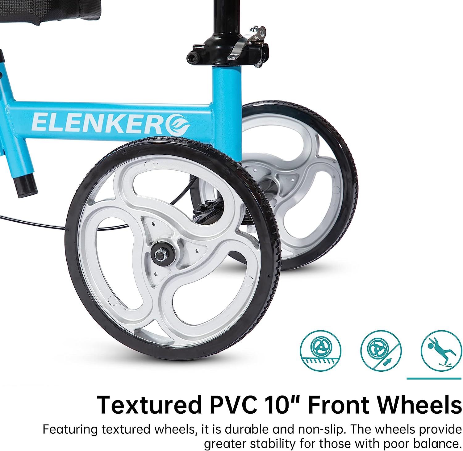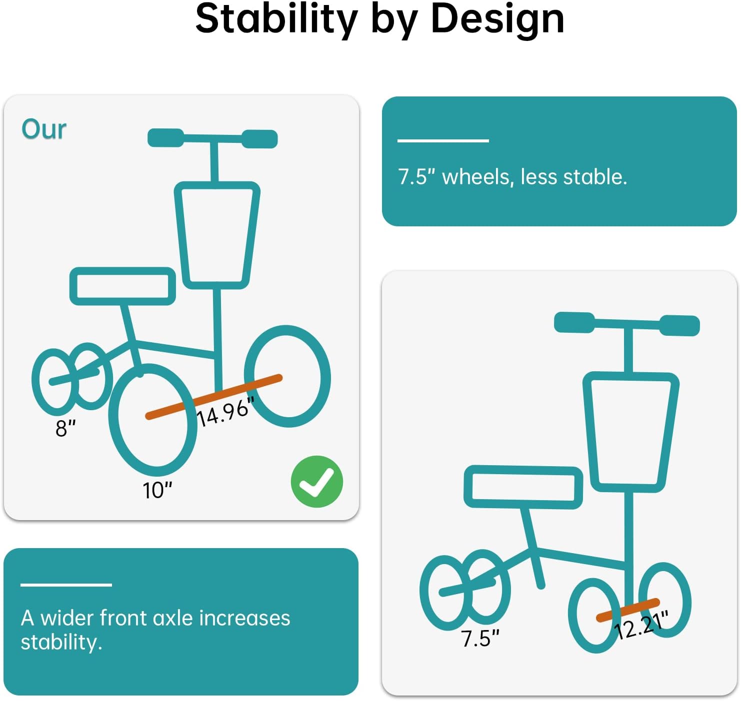 • Textured 10" Front wheels :With durable and non-slip PVC wheels and a wider front axle increases stability,the knee scooter provides greater stability for those with poor balance.