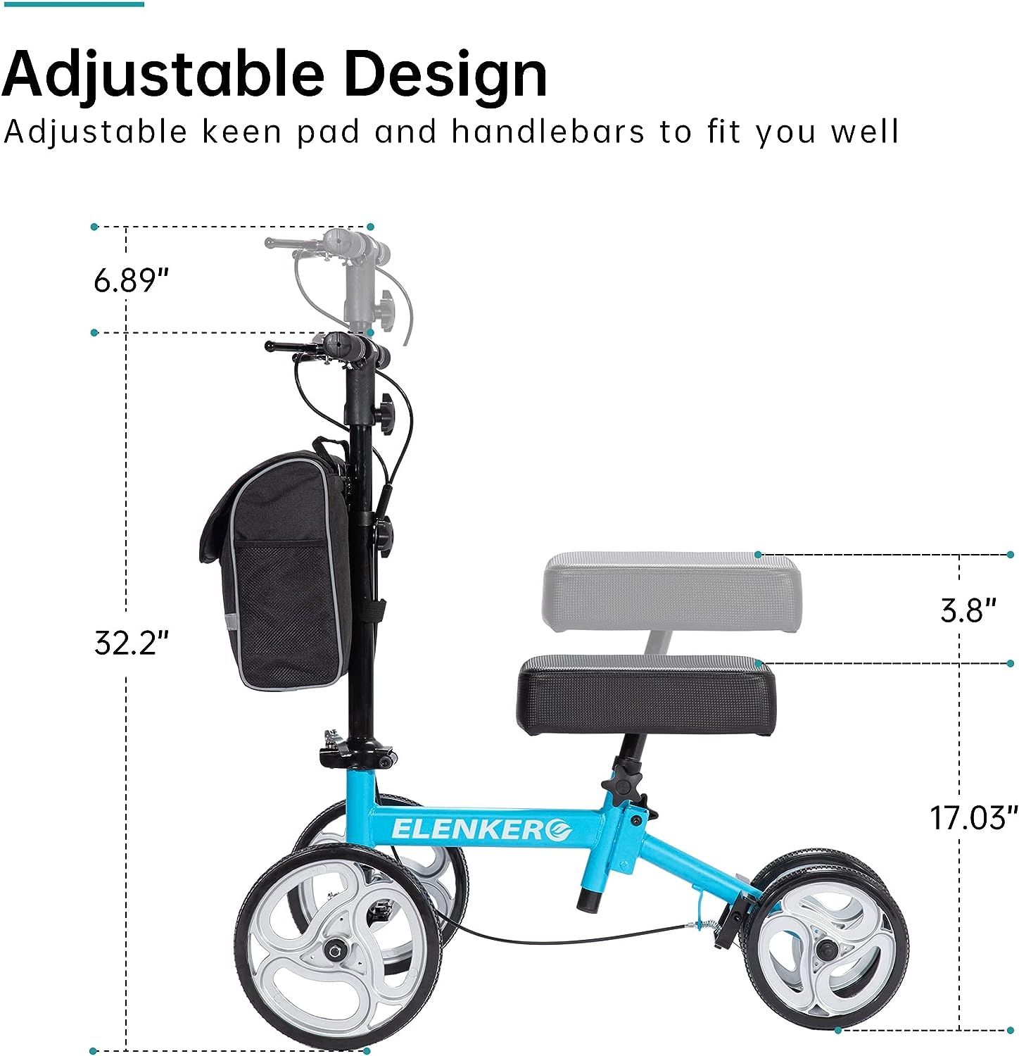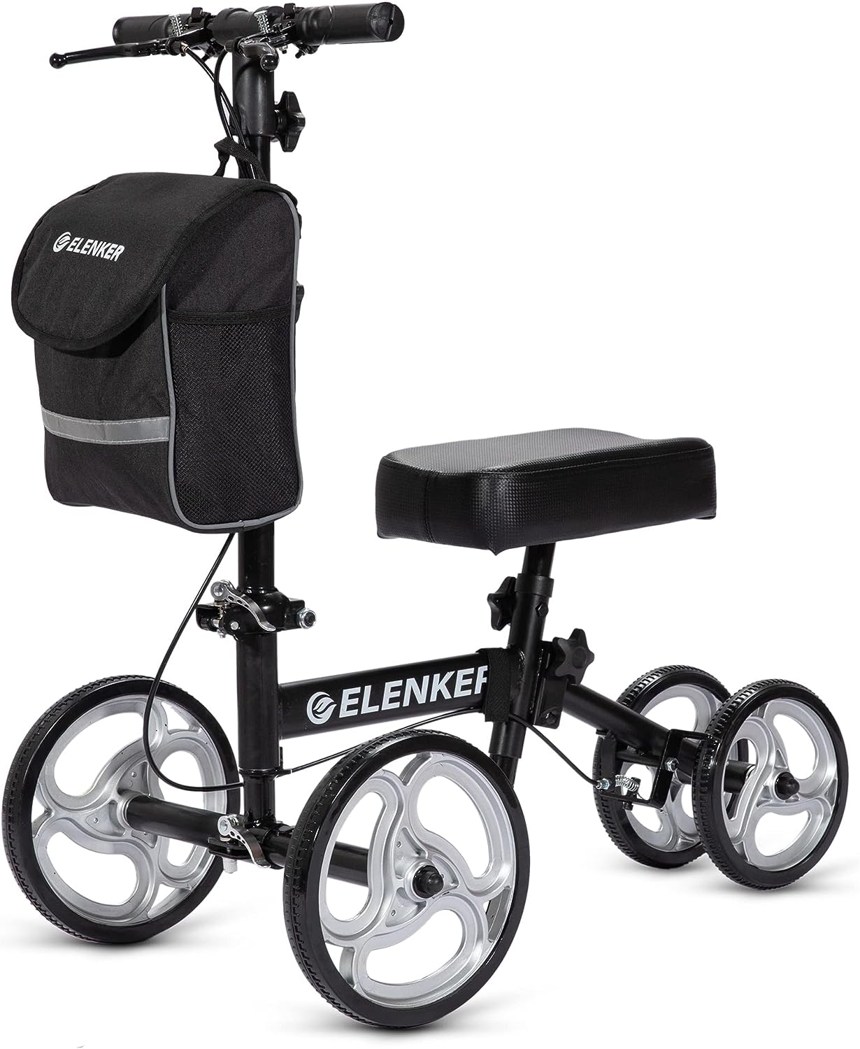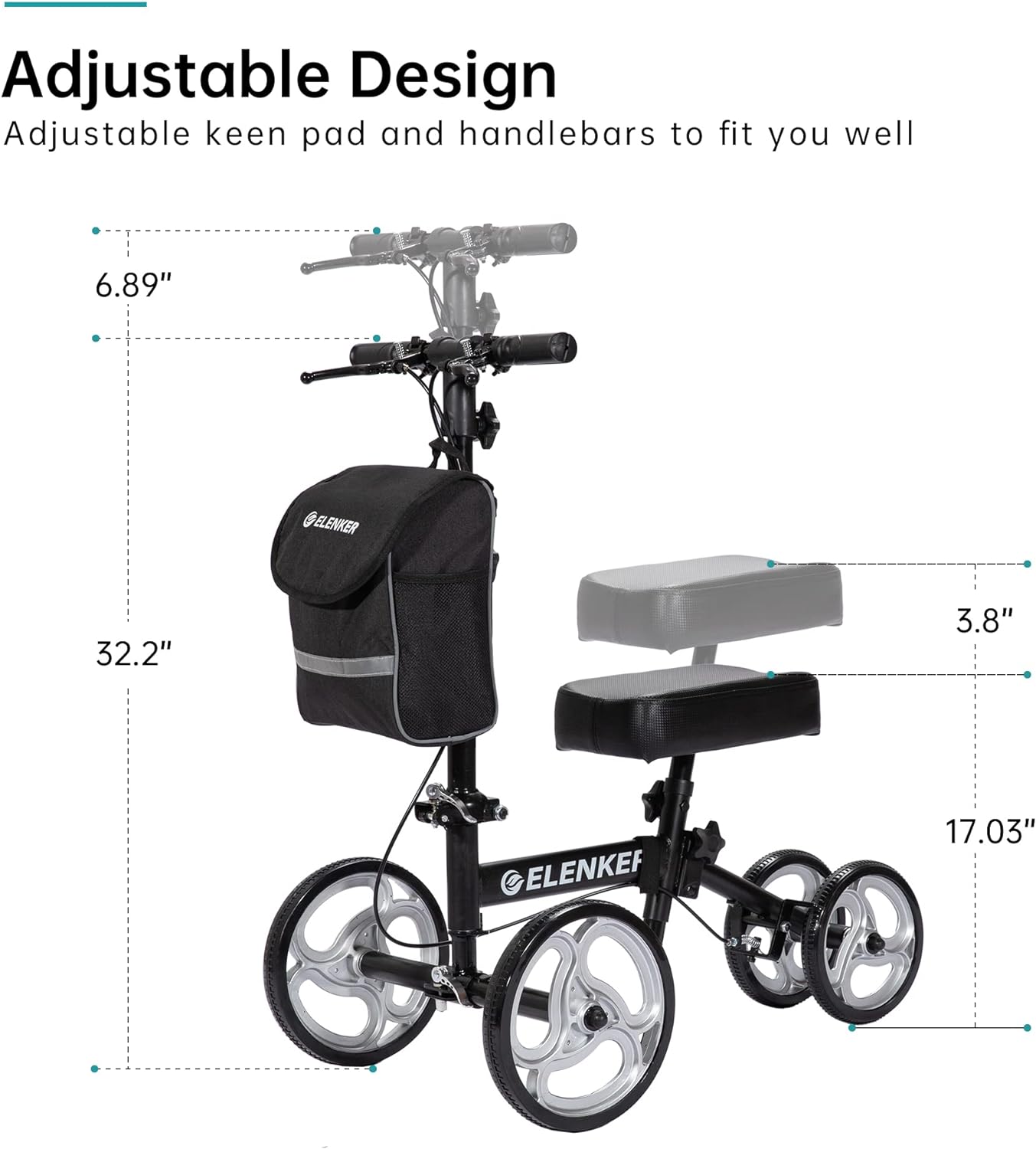ELENKER Steerable Knee Walker with 10" Front Wheels Deluxe Medical Scooter for Foot Injuries Compact Crutches Alternative Black