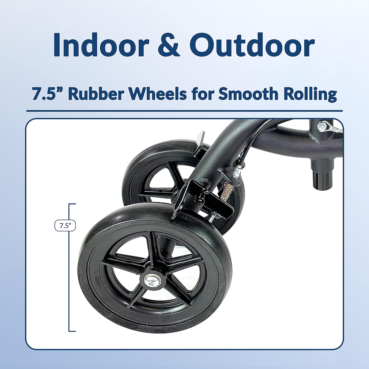 Ideal for indoor and outdoor use, the steerable knee scooter walker features four smooth 7.5" diameter rubber wheels.