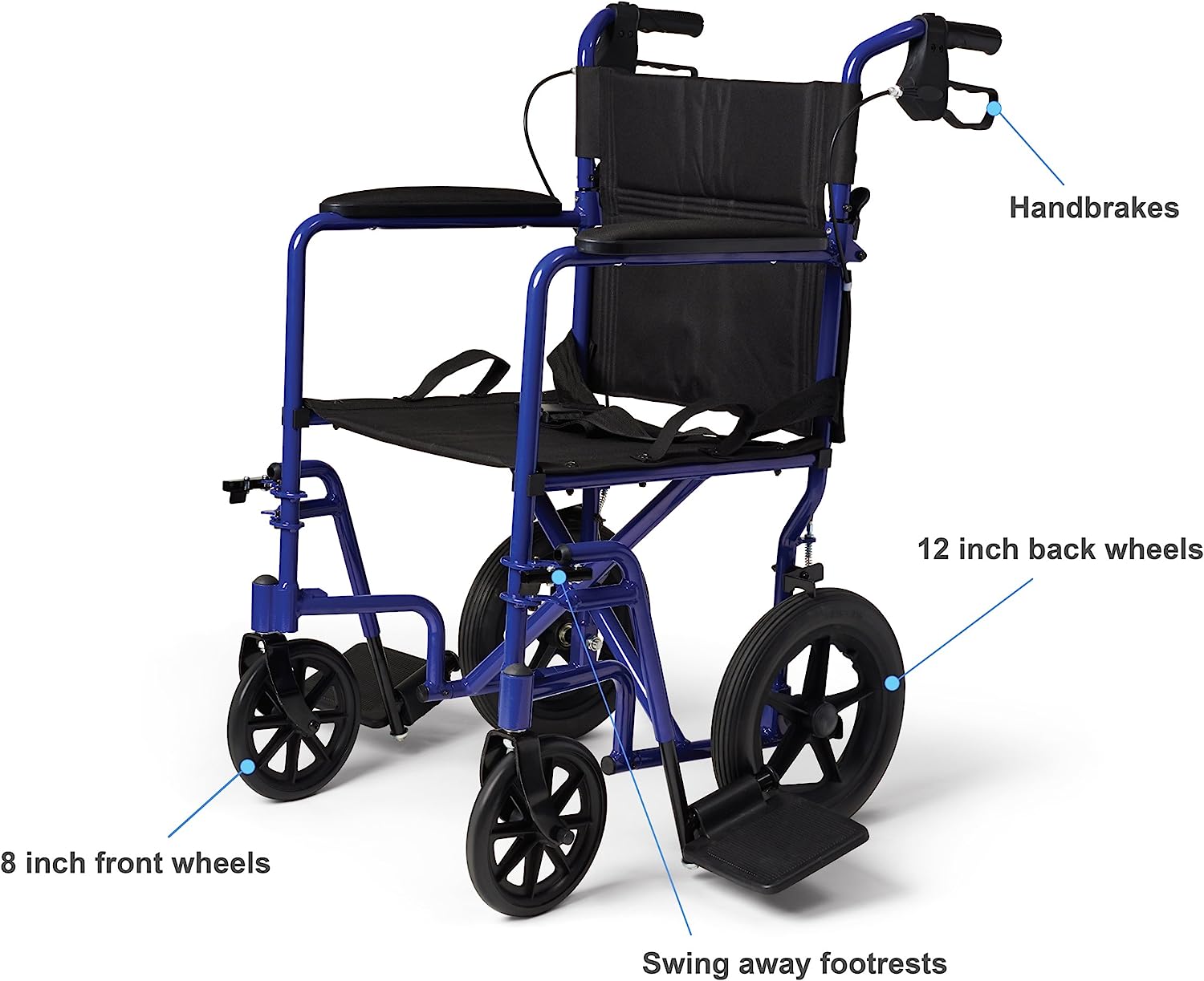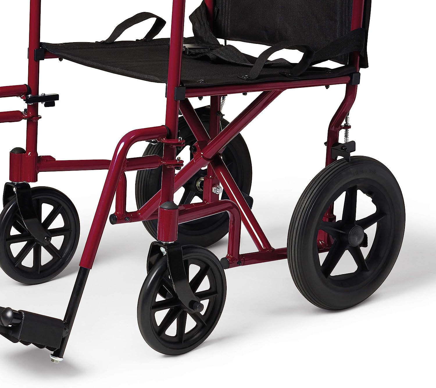 Transport chairs make it easier for your loved ones and caregivers to help you get around in comfort and ease. Compared to standard wheelchairs, a transport chair requires a caregiver to push the chair. A transport chair is much lighter than a wheelchair; plus, it is more compact which makes getting around town easier. This Medline Transport Wheelchair comes equipped with loop-lock handbrakes that are easy to operate and ideal for locking the rear wheels during transfers. It also has a seat belt which keeps the passenger securely in place and it is compact when folded, making it easy to lift into a car or carry up the stairs. Weighs just 23.5 pounds and is equipped with a seat belt, comfortable nylon upholstery, full length permanent armrest, and detachable footrests.