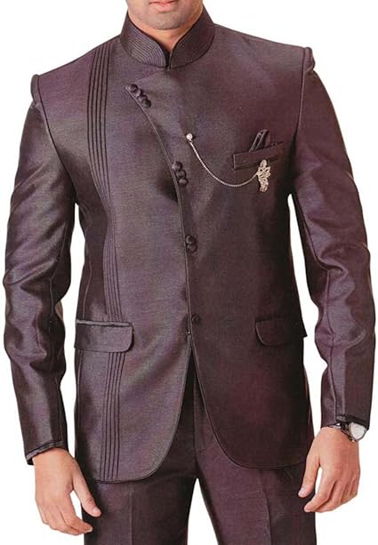 Mens Brown 4 pc Tuxedo Suit Angrakha Pattern TX755