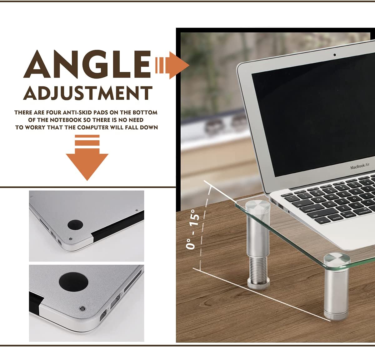 • Tilt Function: My computer monitor riser can adjust forward 0-15 degree to put the computer comfortable position