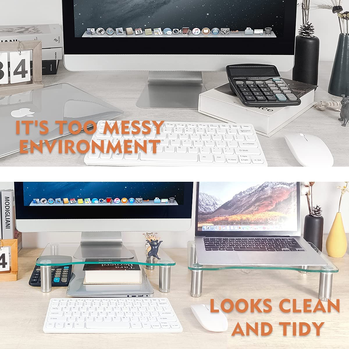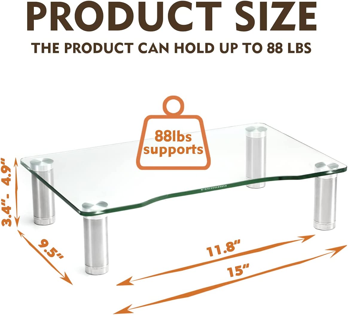• Easy Assembly and widely usage: Combine the tempered glass and stainless steel legs through the screw, 2 Pack ,Can be used in Monitor Riser ,Printer Stand ,Computer Stand ,Laptop Riser,Desk Shelf & Xbox one