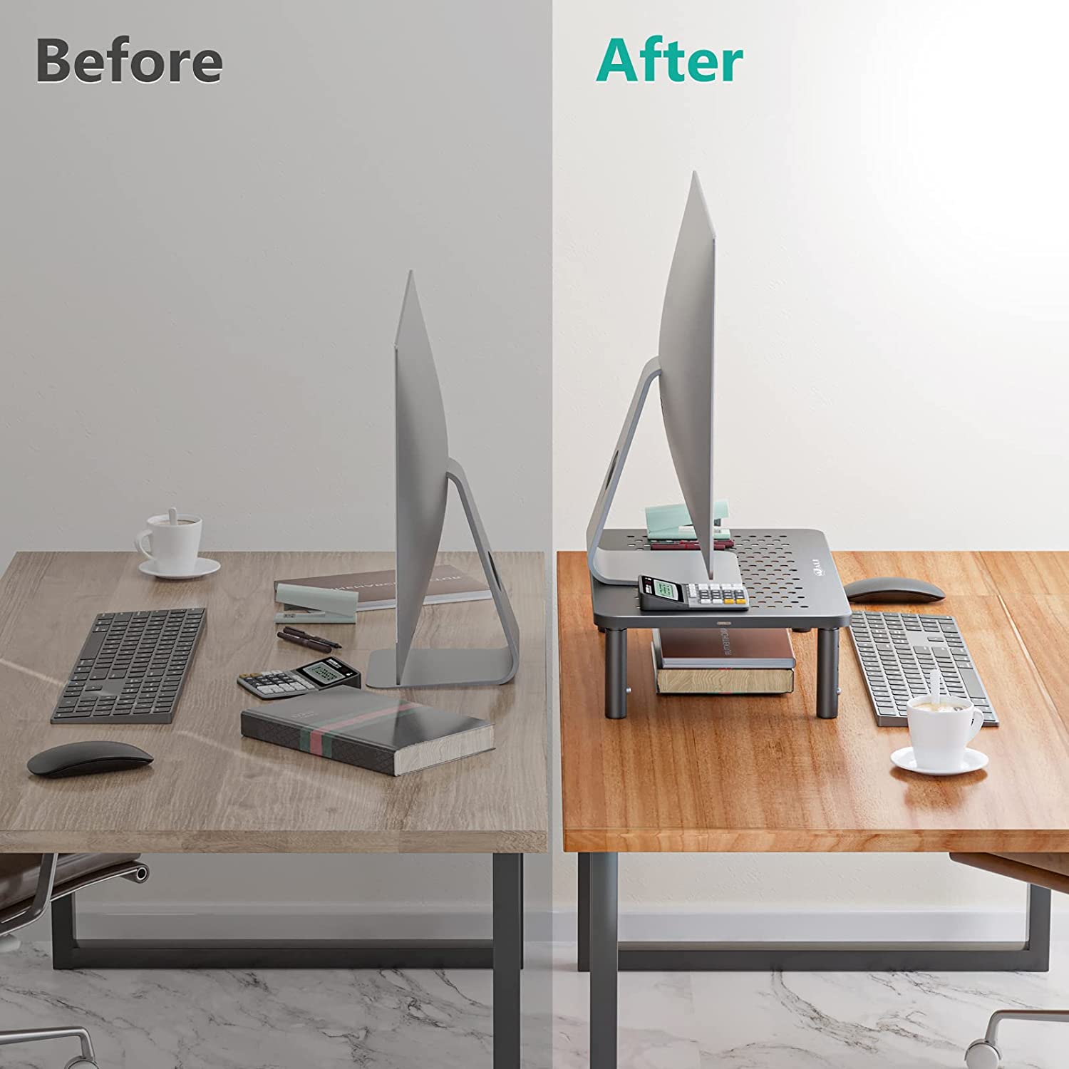• Ergonomic: Raise computer monitor, notebook or any device by 3.9 inches, 4.7 inches or 5.5 inches off the desk to create a comfortable viewing position and a healthier sitting position which help reduce stress on the neck and back.