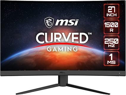 MSI G27C4X 27" Curved Gaming Monitor, 1920 x 1080 (FHD), 1ms, 250Hz, FreeSync, HDMI, DisplayPort, Anti-Flicker, Anti-Glare, HDR Ready, Black