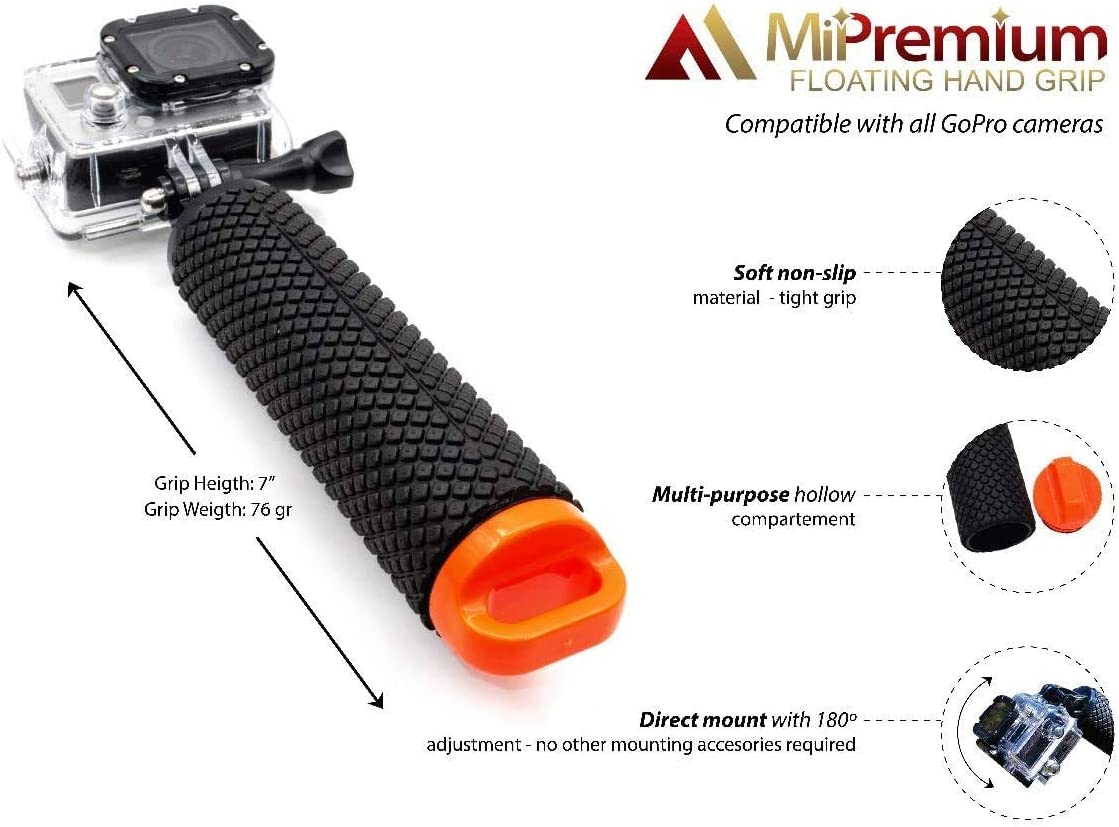 • ►POCKET-SIZE PORTABLE AND LIGHTWEIGHT - The hand grip is 7 inches tall and only weighs under 80 grams and can be used both on land and in the water. This compact and light-weight floating stick is fully compatible with GoPro HD Silver and Black Hero 11 Hero 10, Hero 9, Hero8, Hero 7, Hero 1, Hero 2, Hero 3, Hero 3+, Hero 4, Hero 4s, Hero 6, Hero 5 Session edition. No other mount accessories are required. The mount tilts 180 degree providing increased shooting possibilities.