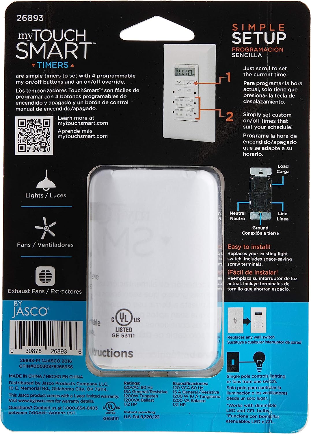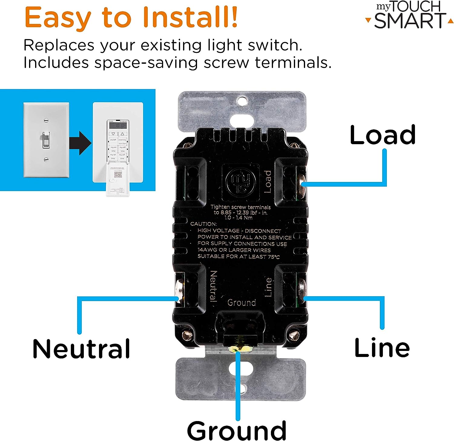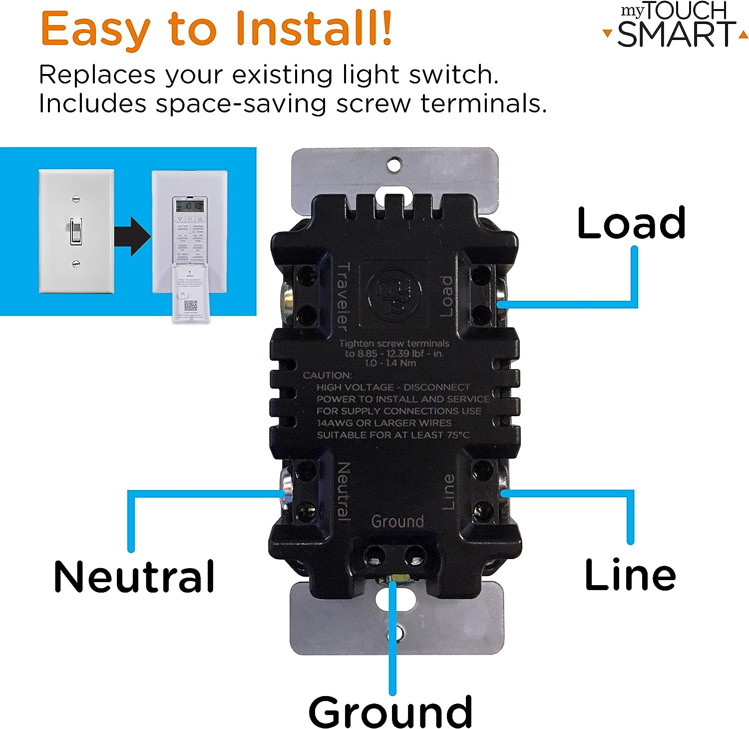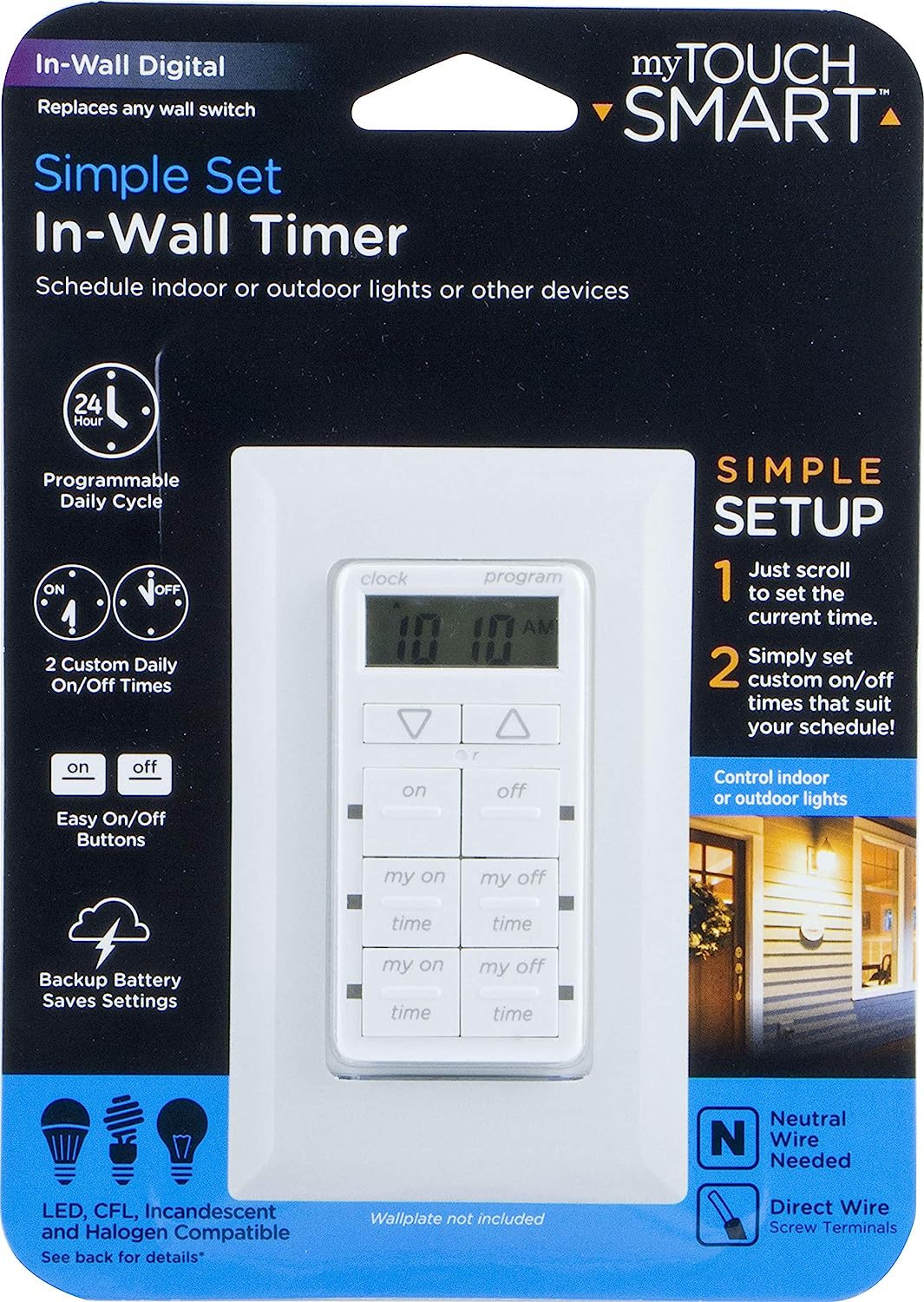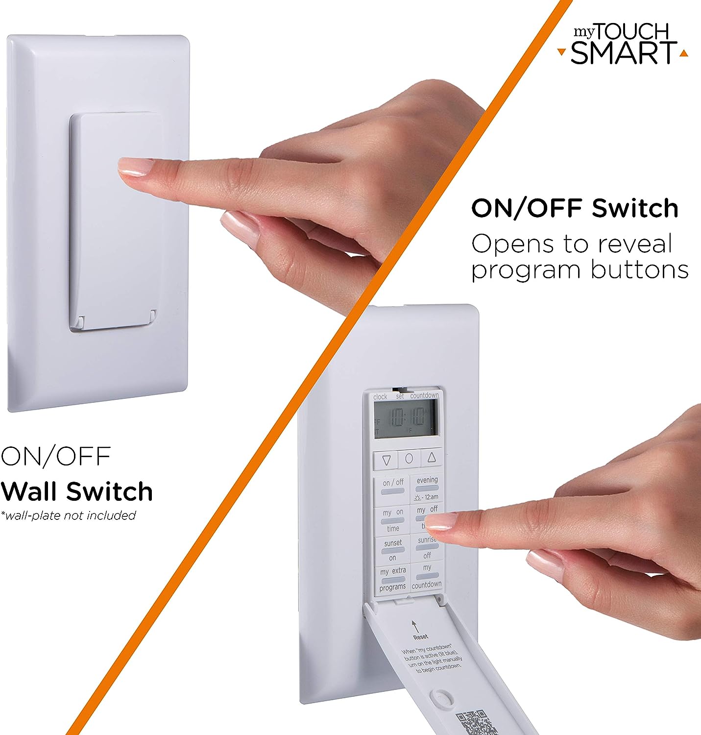Move toward simple control with the myTouchSmart In-Wall Motion Sensor. The motion sensor activates lights when movement is detected so you never have to search for a switch in a dark room. Simple-set programming delivers convenient automation to your lighting and is compatible with LED, CFL, incandescent and halogen bulbs. Easy-to-use buttons control how long lights remain on once motion is no longer sensed. Choose from occupancy mode for full automation or vacancy mode to turn on lights manually and off after a selected time from 1-30 minutes. Adjustable motion sensitivity with a detection range of up to 30ft., coverage area of up to 150 degrees and a light-sensing function make the sensor perfect for any room. Blue LED indicators identify selected settings to keep track of your programs. NO WALL PLATE INCLUDED but a changeable door – white and light almond included – conceals the buttons and LEDs, blends in with existing switches, and serves as a manual ON/OFF switch. Space-saving screw terminals allow the sensor to replace any switch. Increase your control with the myTouchSmart In-Wall Motion Sensor.