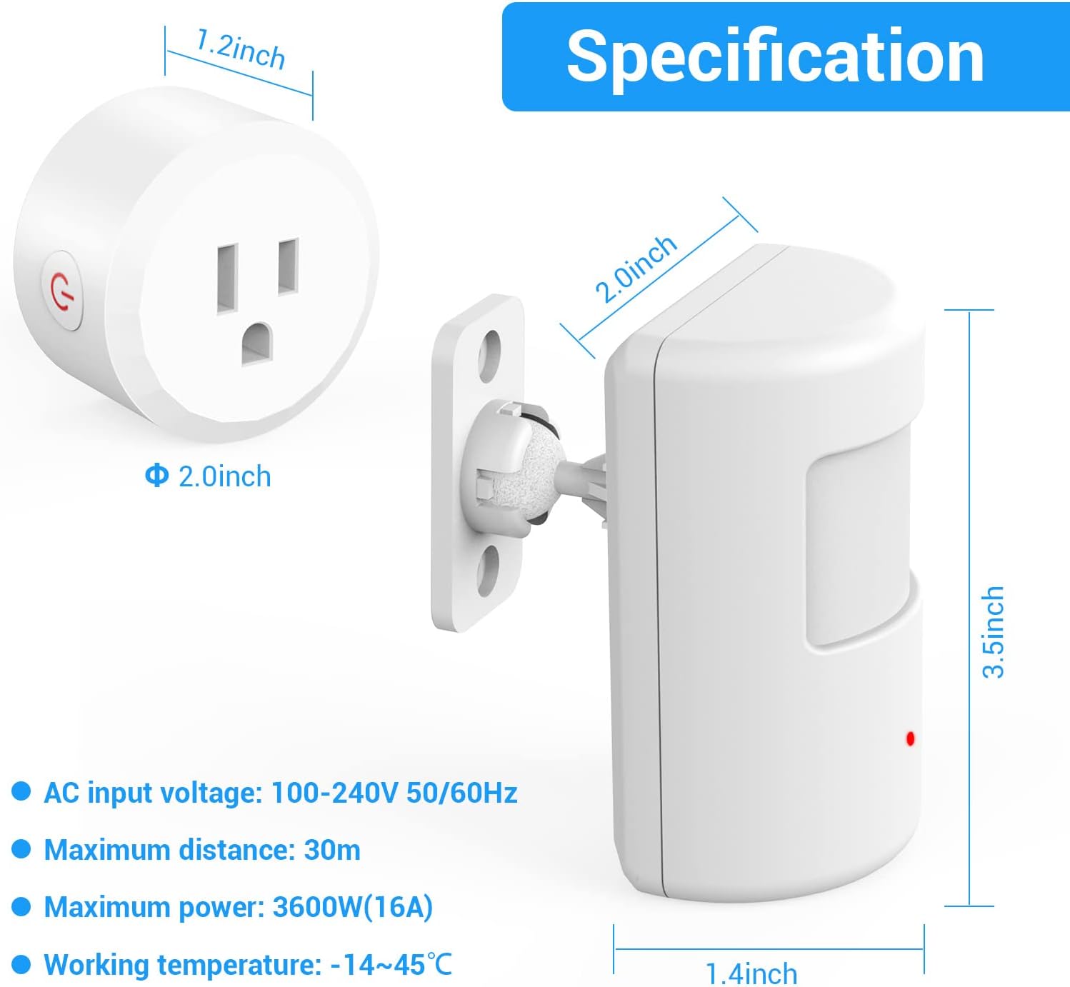 • ✅【Easy to install】 No wire required -The motions sensor can be installed anywehere you need in as little as several minutes. Just plug your Domestic Appliances into the mini socket, then our motion sensor switch can controll your lights or other devices through PIR Infrared Motion Sensor - ideal for homes of all ages and make your life much more convenient