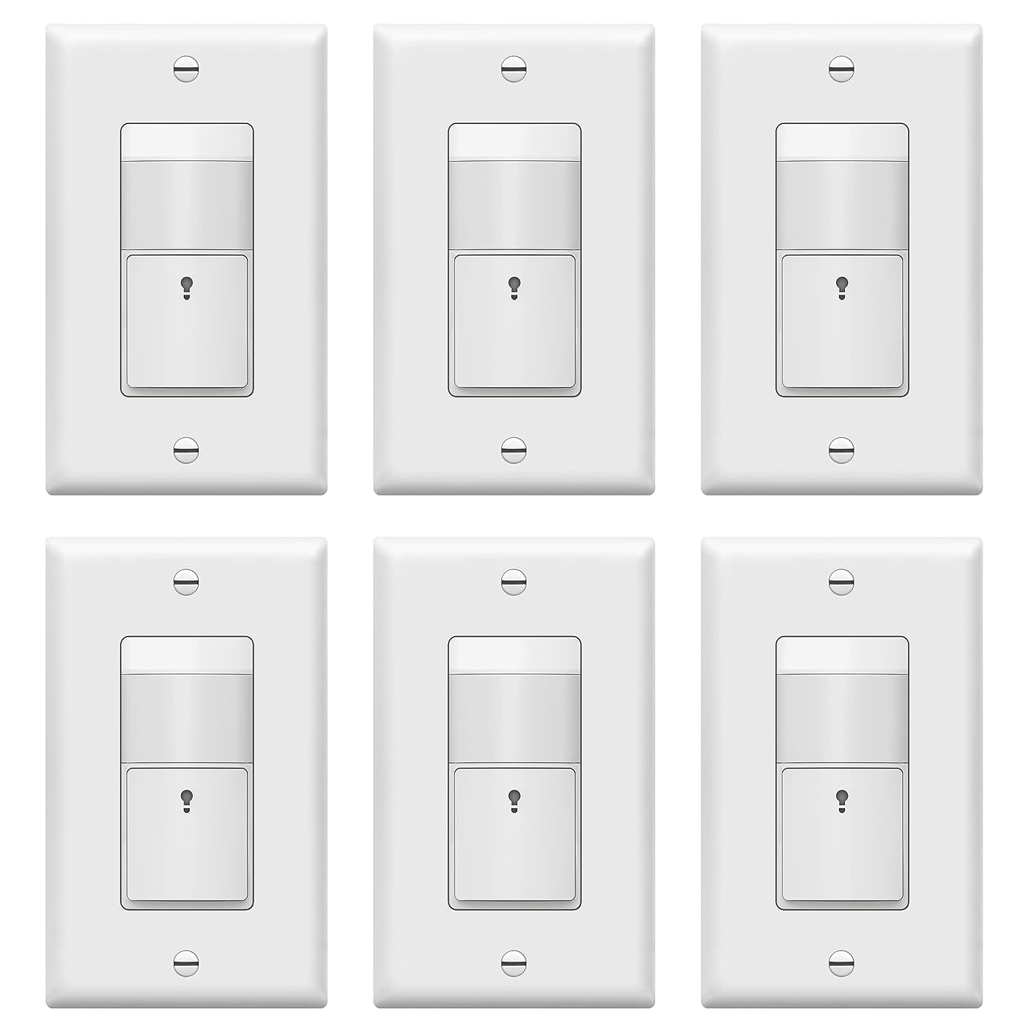 TOPGREENER Motion Sensor Switch, PIR Sensor Light Switch, Occupancy & Vacancy Modes, Operable ??????? ?????? ????, No Neutral Required, 150W Dimmable LED, TDOS5-KM-W-6PCS, White