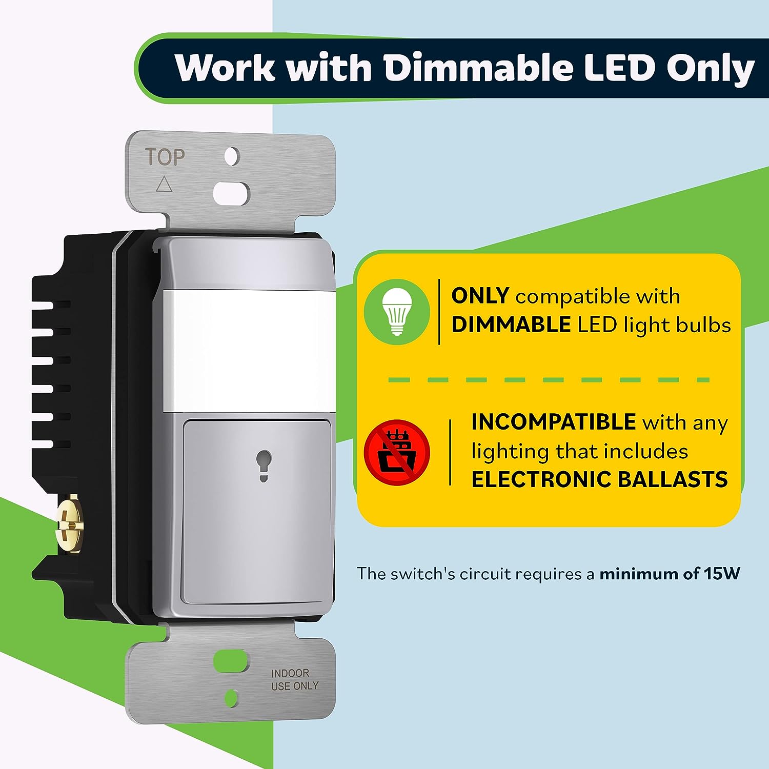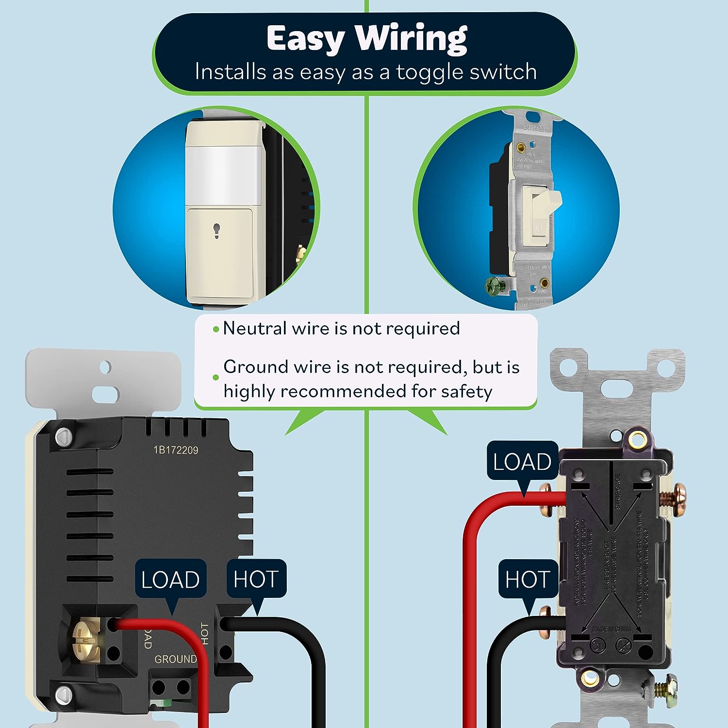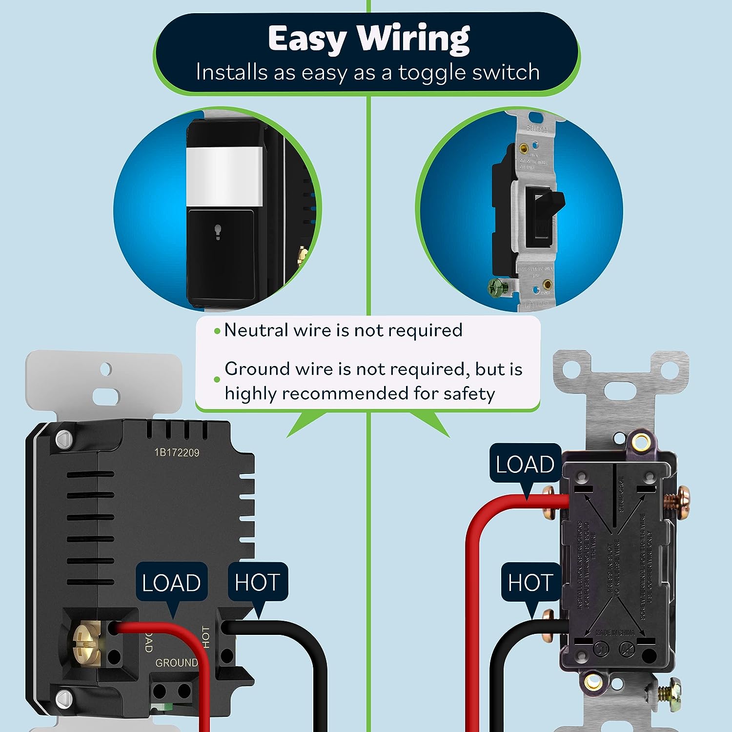 • Motion sensor wall switch features a universal wiring design with interchangeable hot and load wires to make installation easier; no longer second guess which wire goes where
