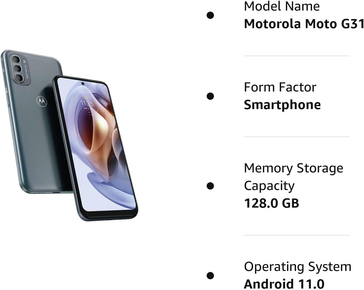 The Motorola Moto G31 is powered by 2.0 GHz Octa-core processor and it comes with 4GB of RAM. The Motorola Moto G31 packs 128GB of internal storage that can be expanded via microSDXC (uses shared SIM slot).