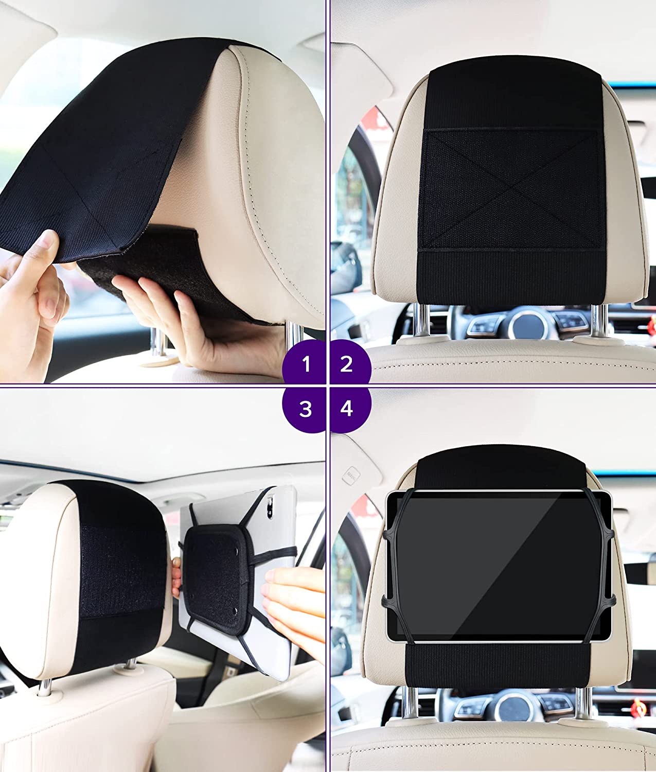 • 🚓🚗【Safe & Stable Protection】 Constructed from long-wearing and safe materials, the adjustable headrest strap is suitable for headrests of different sizes. This tablet holder can securely hold your devices and allow you easy access to the buttons and screens of tablets. Without worrying about the device falling or being unable to stabilize your device.