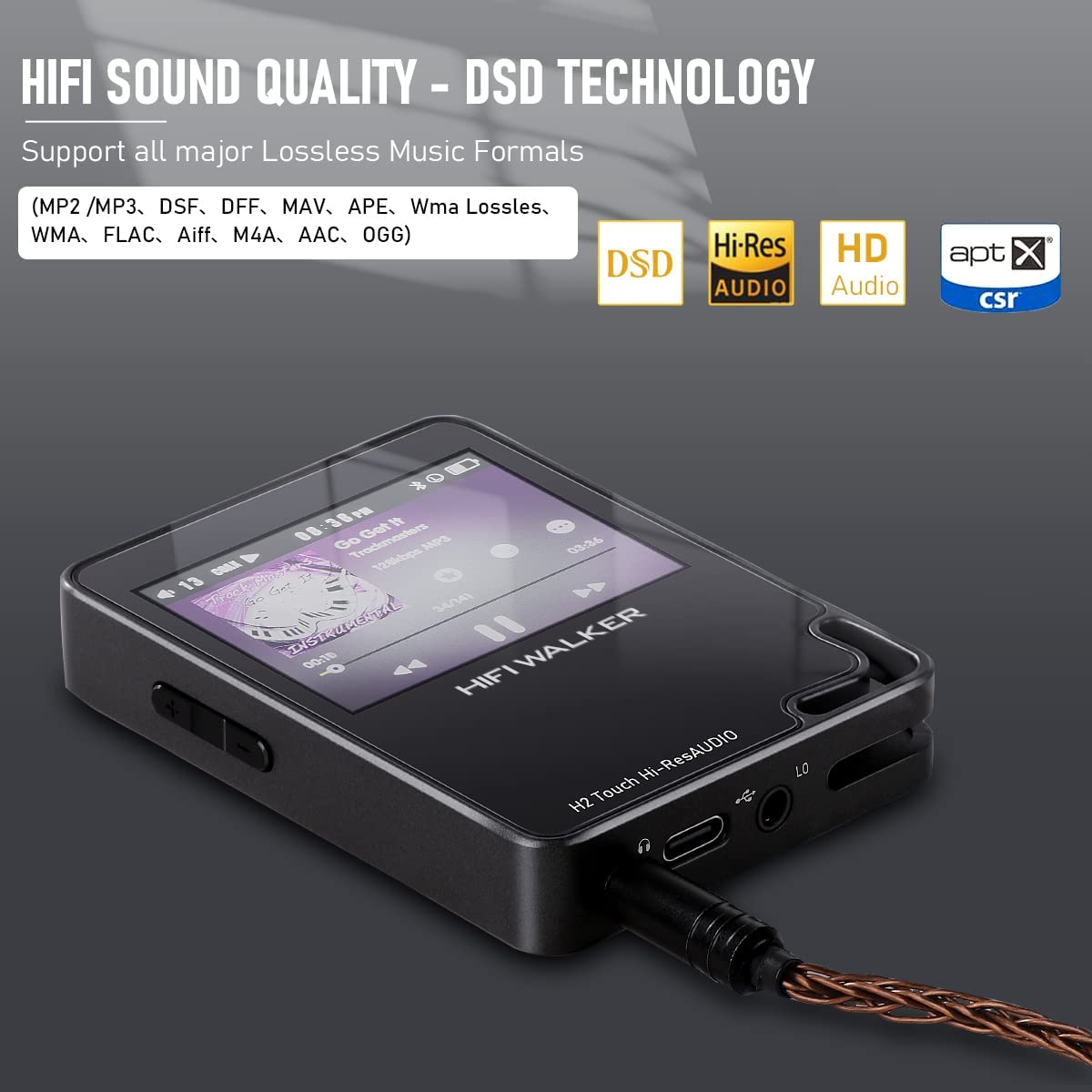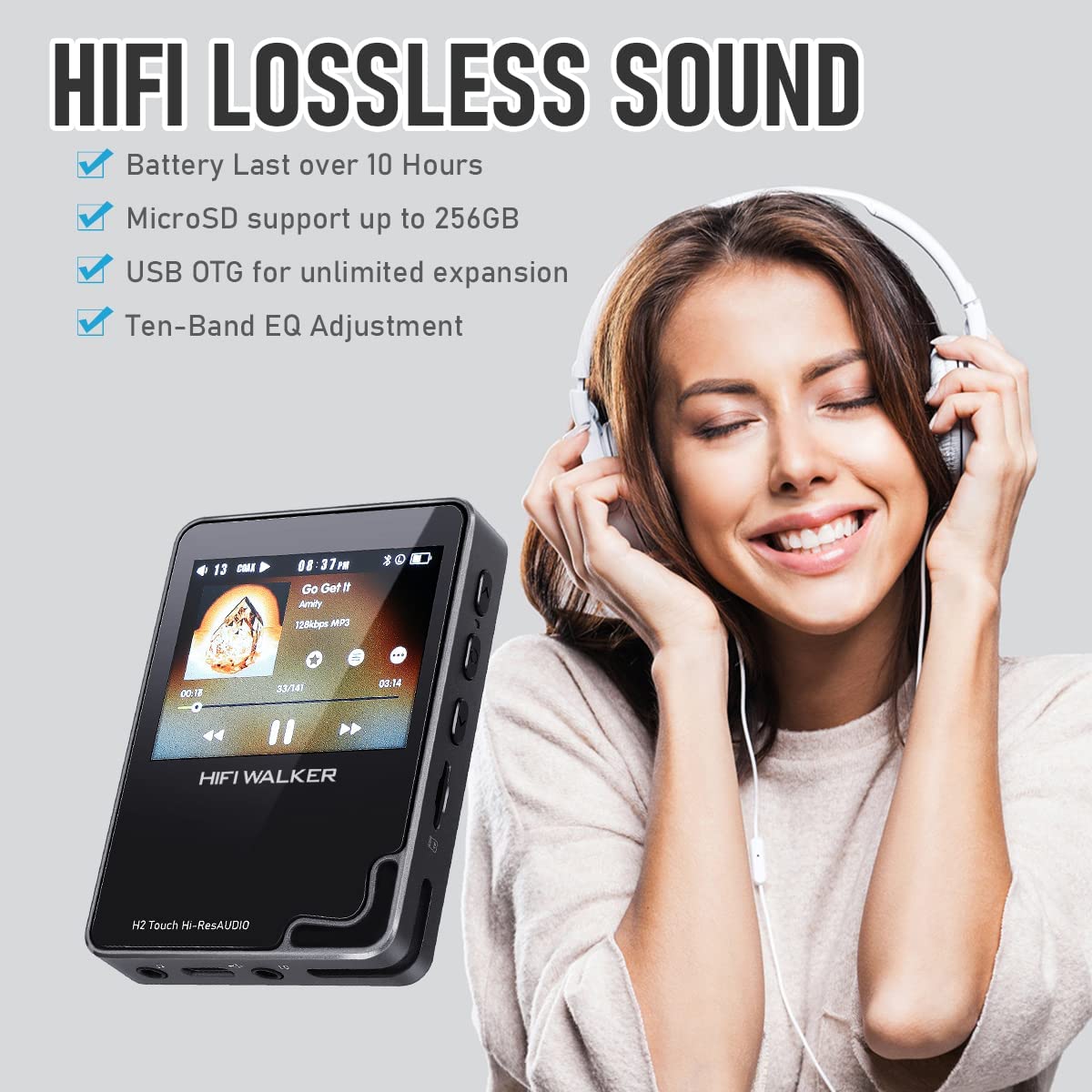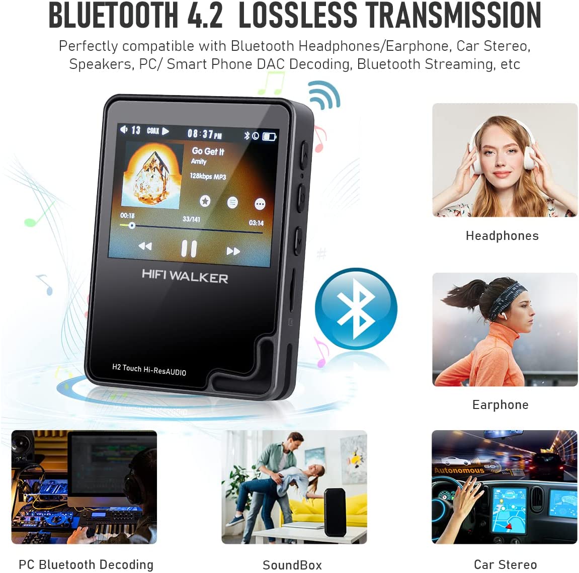 HIFI WALKER H2, HiFi MP3 Player with Bluetooth, Portable Digital Music Player, DSD Lossless FLAC Player, Hi Res Audio Player with 64GB Memory Card, Support Up to 256GB