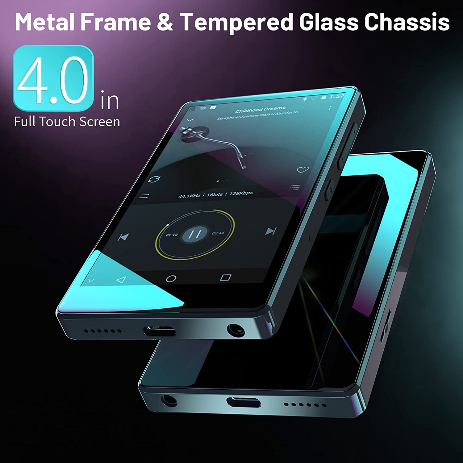 Luoran Mp3 Player Bluetooth with Spotify for Kids, Audible,Browser(Removable),Amazon Music,4.0" IPS Display MP4 Portable Music Player,Full Touchscreen Metal Frame & Glass Back Up to 256GB (Black)