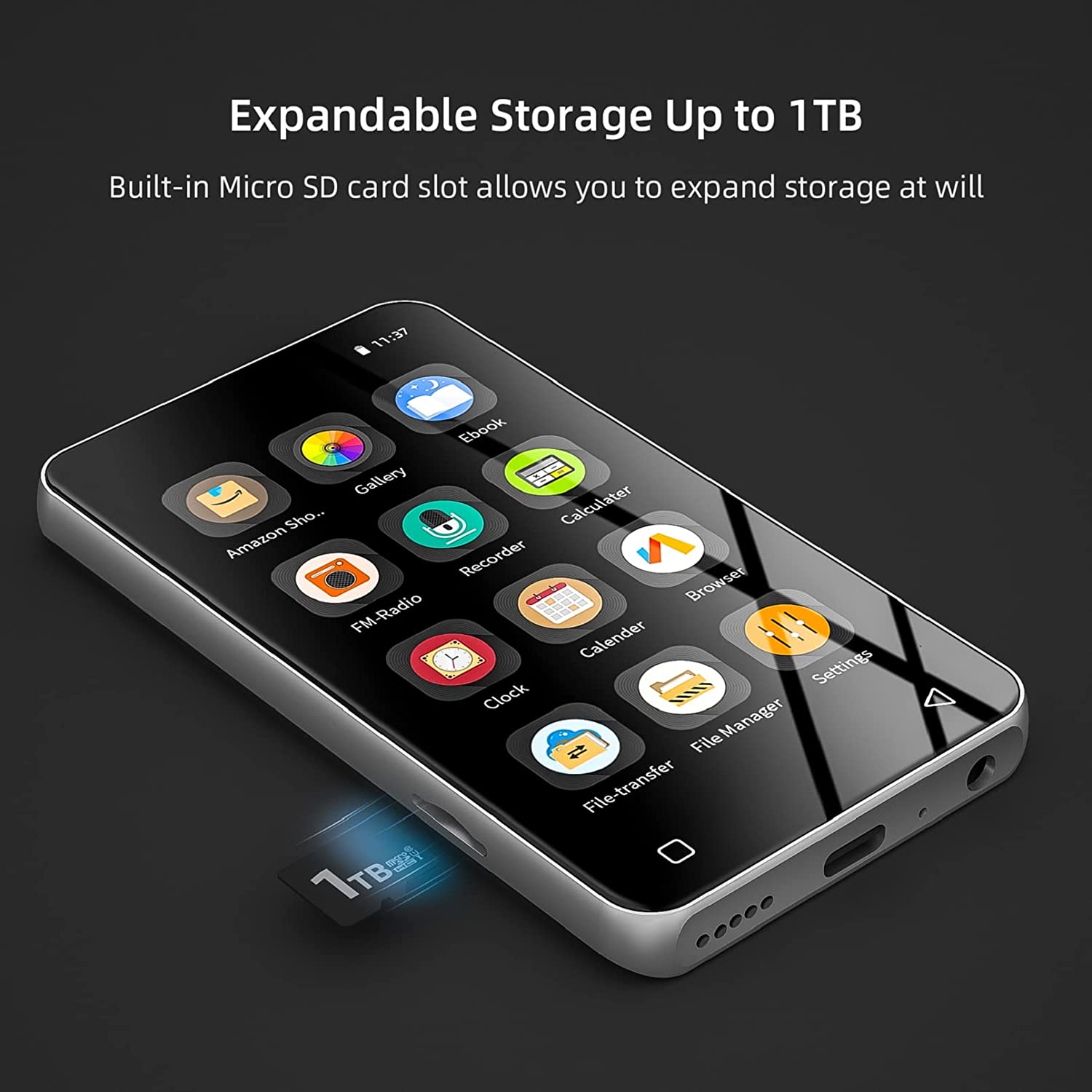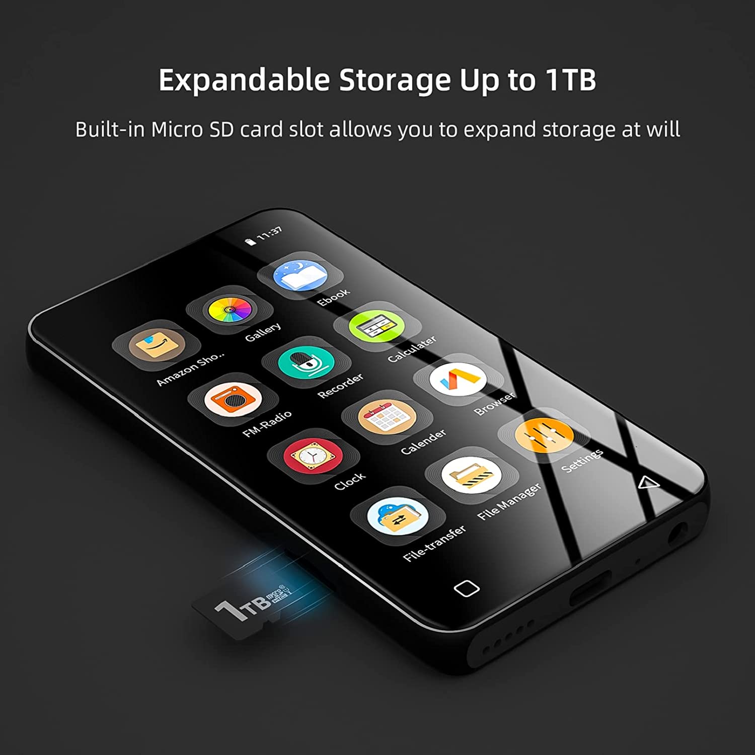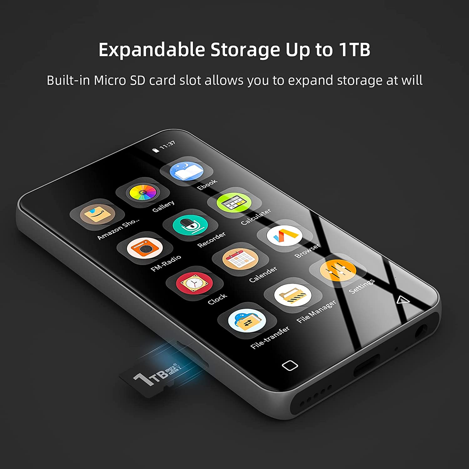 • 💝Expandable up to 1TB - This digital audio player provides a Micro SD card slot. It allows you to expand external storage up to 1TB and is compatible with SDXC, SDHC. This can greatly satisfy your need to store more songs, videos, audiobooks.