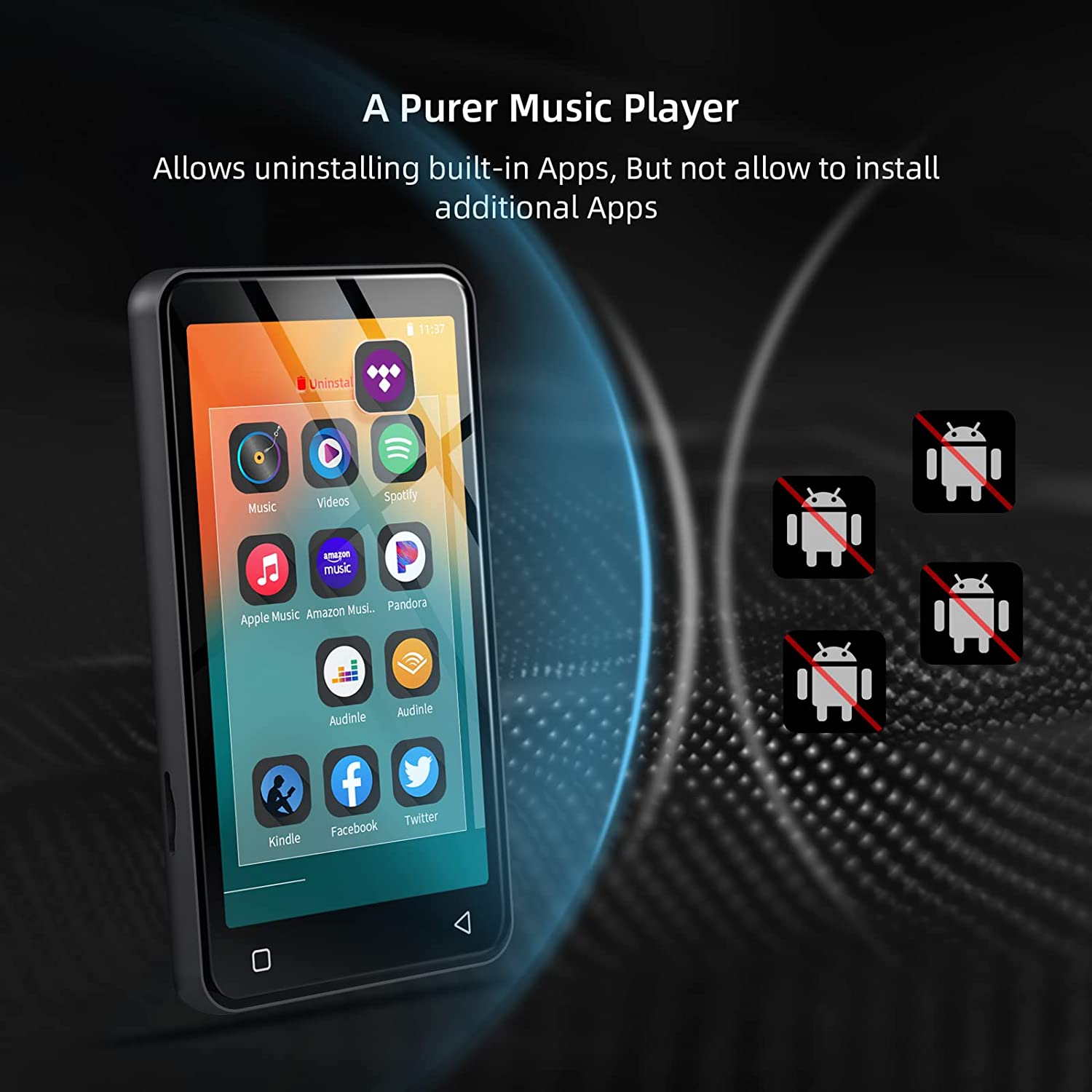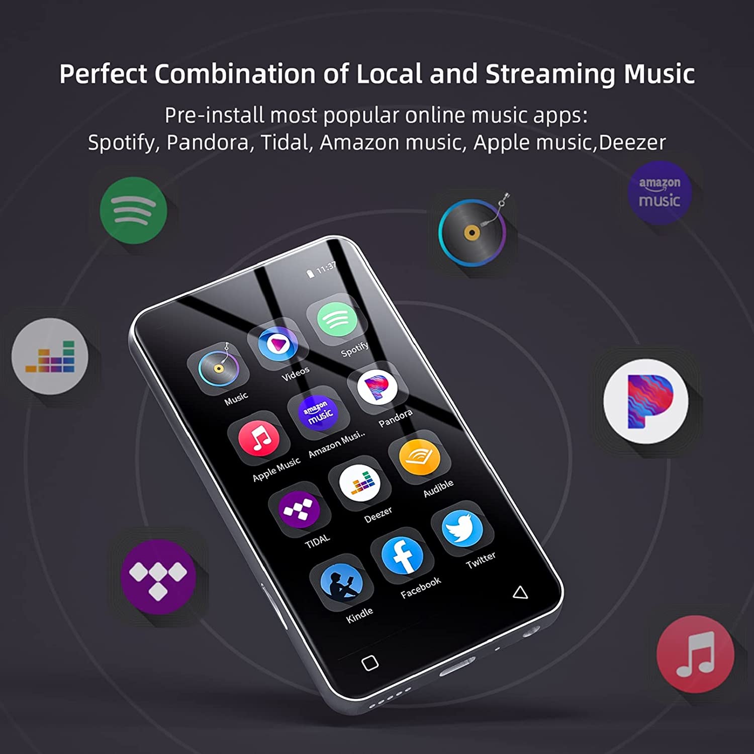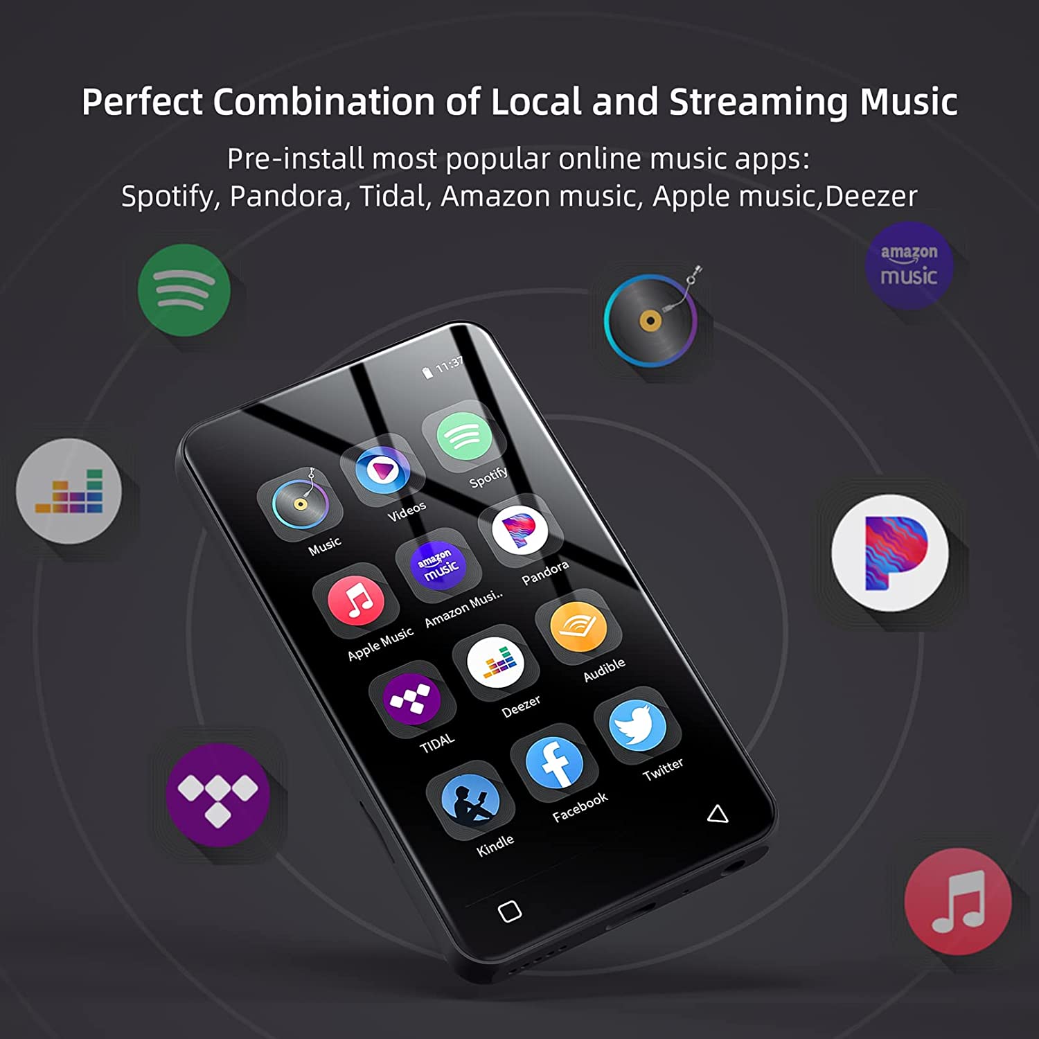 MP3 Player with Bluetooth and WiFi, 4" Full Touch Screen MP4 MP3 Player with Spotify, Android Streaming Music Player with Pandora, Portable HiFi Sound Walkman Digital Audio Player with Speaker (Black)