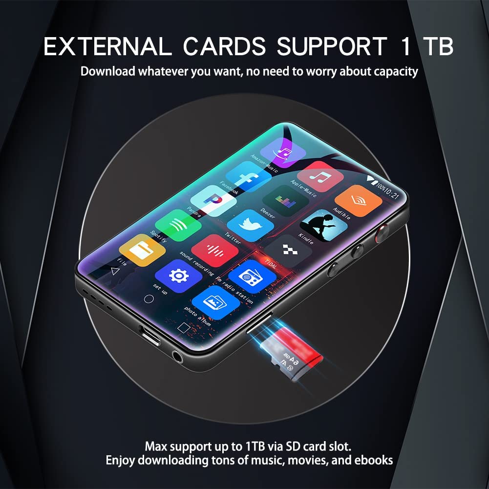 MYMAHDI 80GB MP3 Player with Bluetooth and WiFi,4" Music Player Touch Screen with Spotify, Pandra, Android Streaming MP3 Player with Audible, HiFi MP4 Player with Speaker and Deezer, Max Support 1 TB