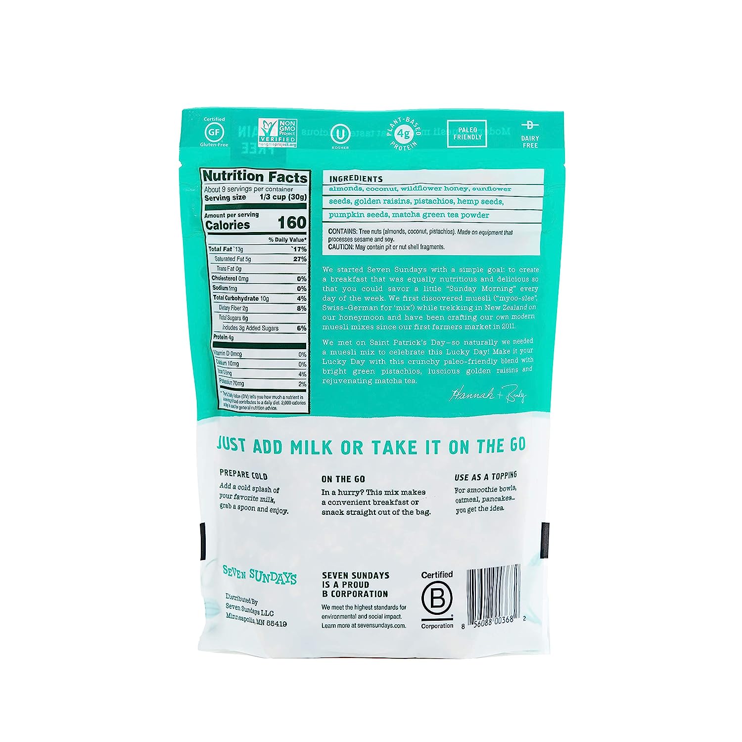 • NON GMO PROJECT VERIFIED MUESLI: Responsibly sourced ingredients, picked from the best farmers and producers available to create healthier gluten free breakfast muesli as an alternative to cereal and granola or oatmeal