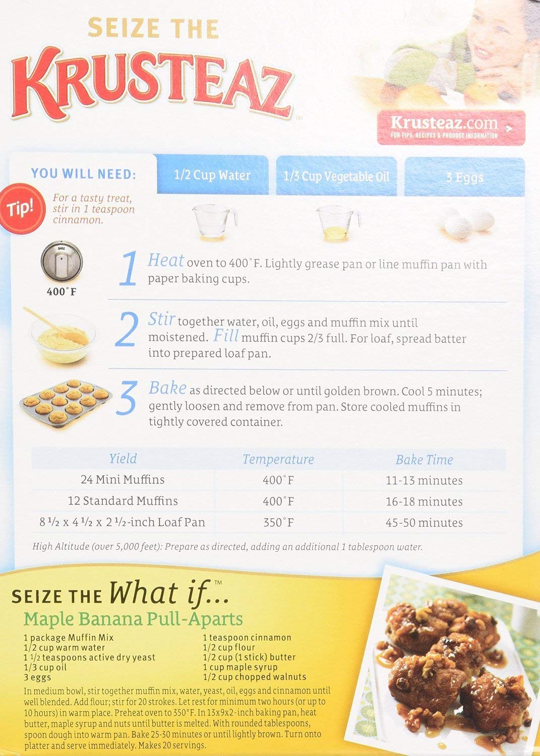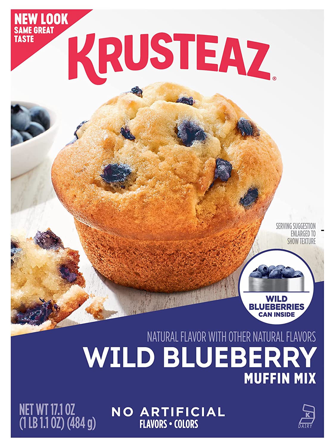 Fill your home with the scent of freshly baked Krusteaz Wild Blueberry Muffins, then fill a plate and watch the blueberry deliciousness disappear. A can of sweet and juicy wild blueberries is included in every box to make these muffins bursting with blueberries. They’re so good that your family may want you to double the recipe.