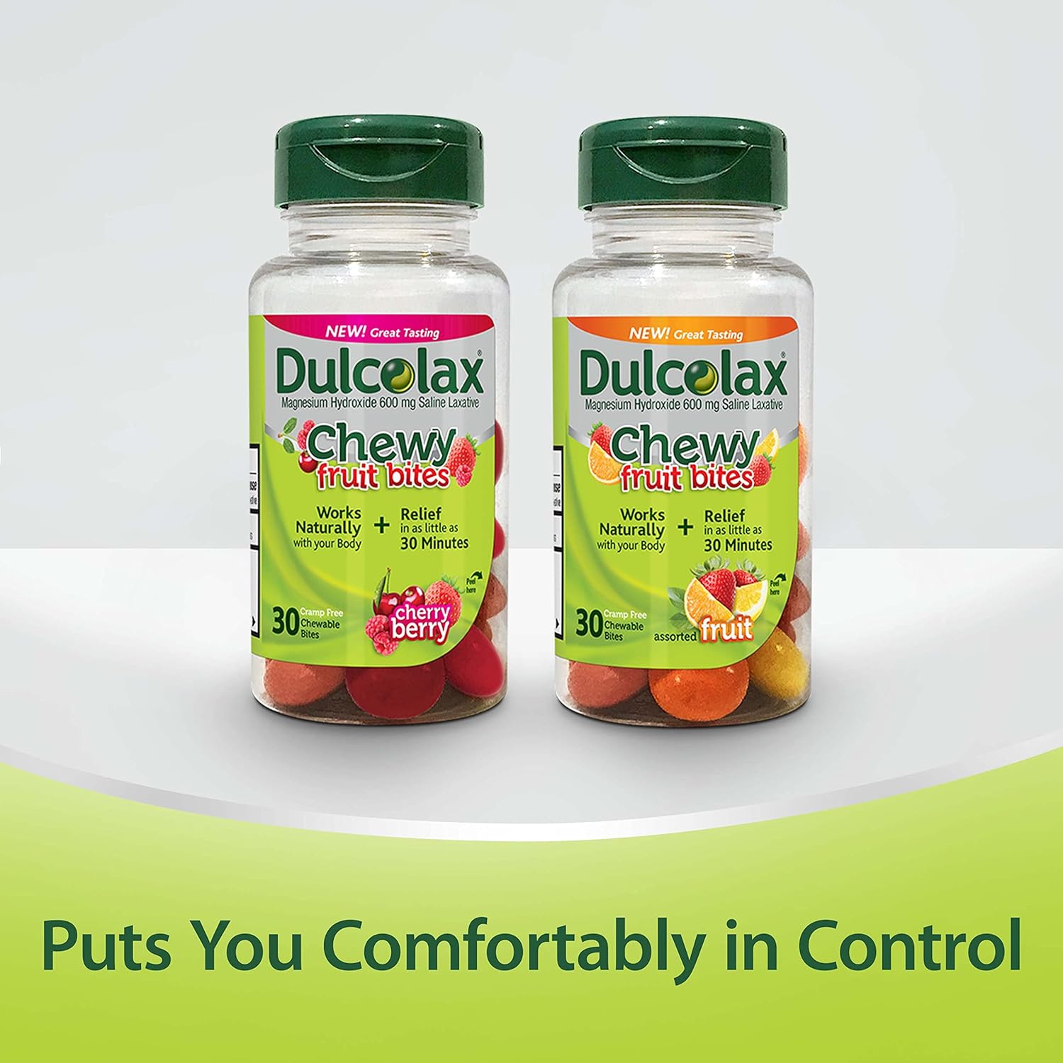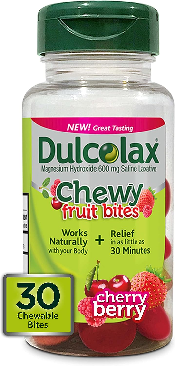 Dulcolax Chewy Fruit Bites, Saline Laxative, Cherry Berry (30ct) Cramp-Free Constipation Relief