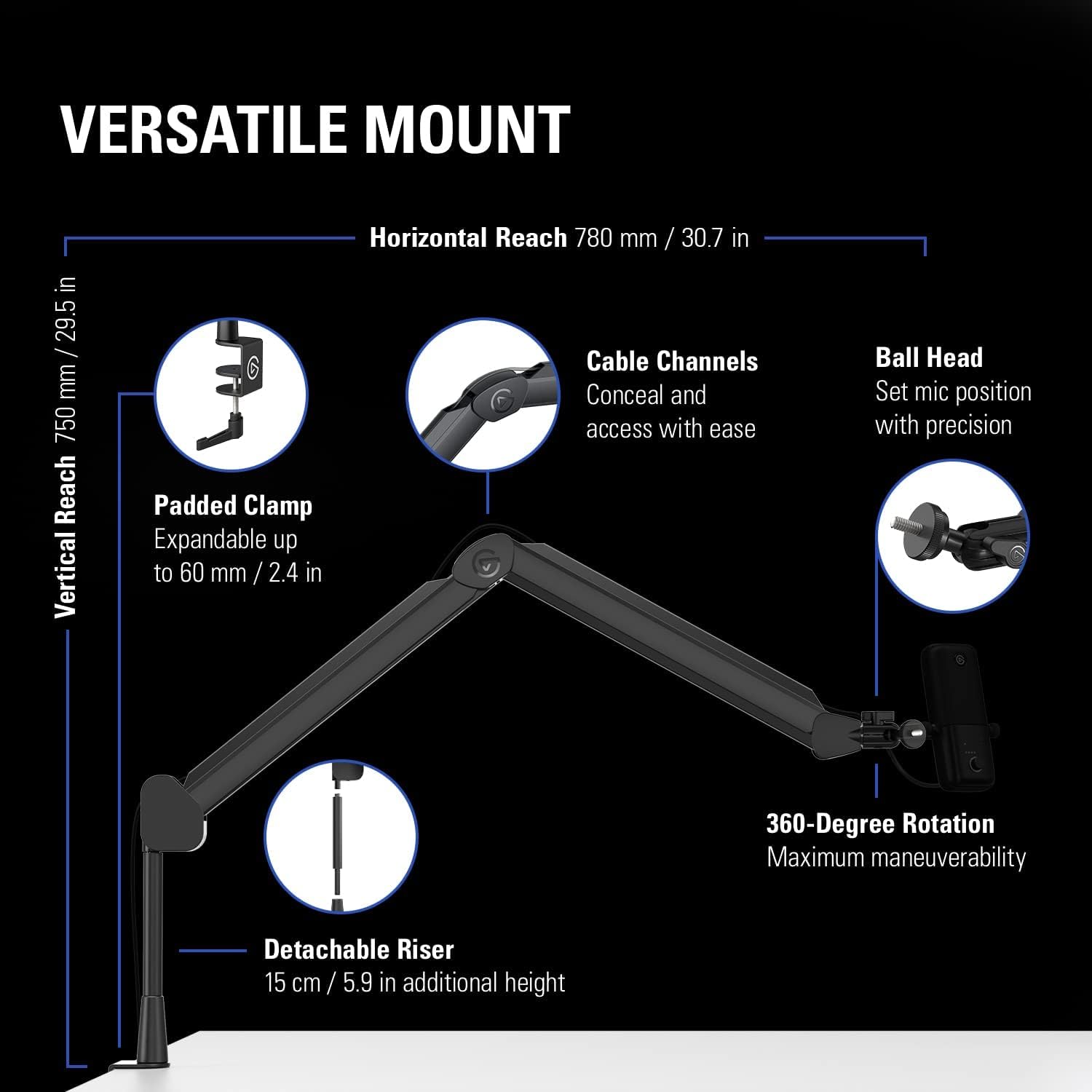 Elgato Wave Mic Arm - Premium Broadcasting Boom Arm with Cable Management Channels, Desk Clamp, 1/4" Thread Adapters, Fully Adjustable, perfect for Podcasts, Streaming, Gaming, Home Office, Recording
