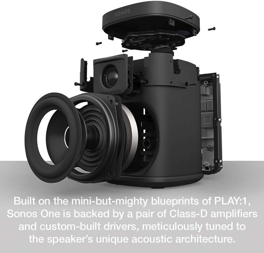 All-new Sonos One – Voice Controlled Smart Speaker with Amazon Alexa Built In (Black). Two Class-D digital amplifiers perfectly tuned to match the speaker drivers and acoustic architecture.