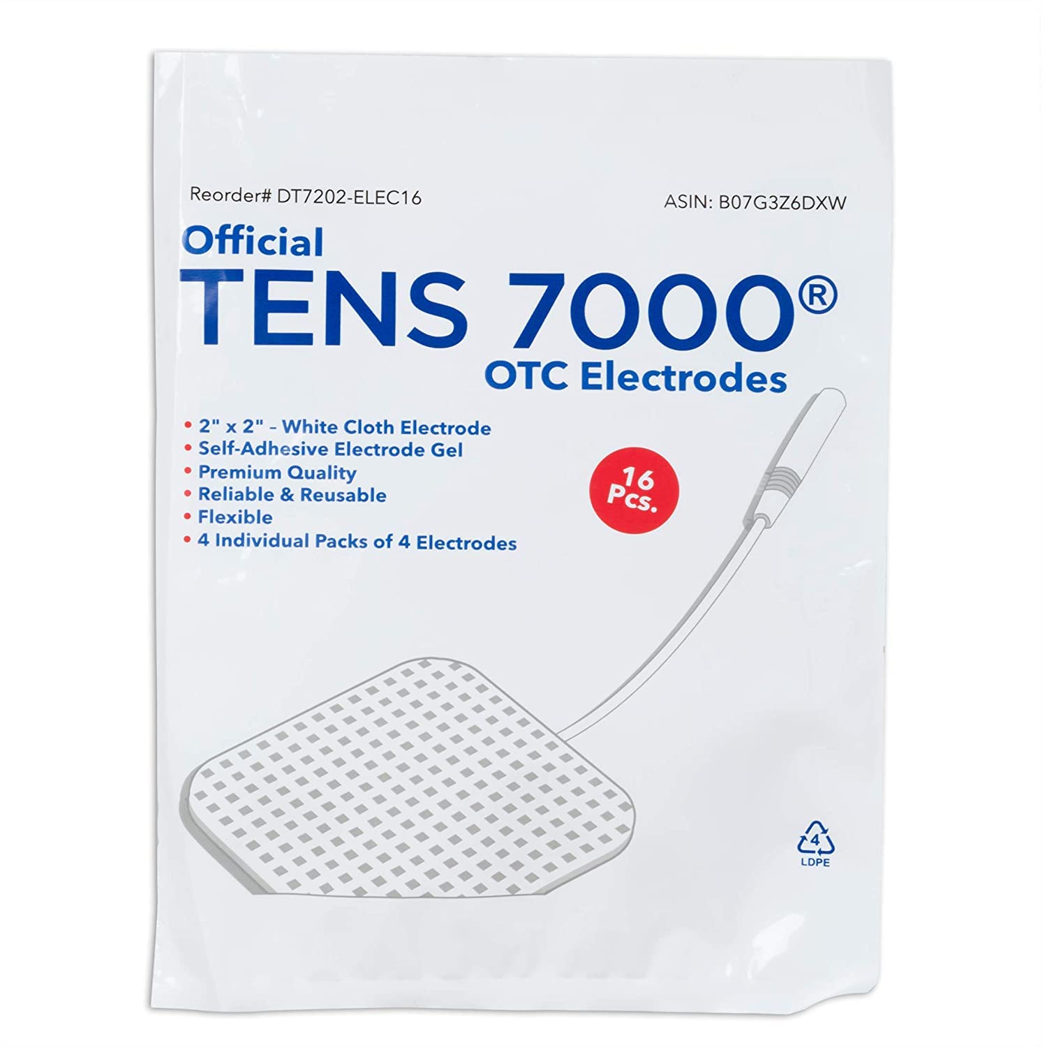 TENS 7000 Official TENS Unit Electrode Pads, 16 Pack - Premium Quality OTC TENS Pads, 2" X 2" - Compatible with Most TENS Machines, Replacement Electrodes Value Pack