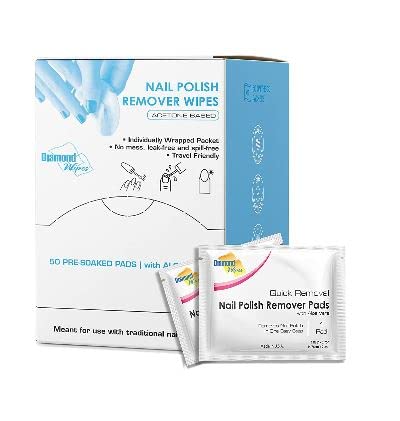 Diamond Wipes Nail Polish Remover Pads with Aloe Vera, 50 Individually Wrapped Acetone Wipes -