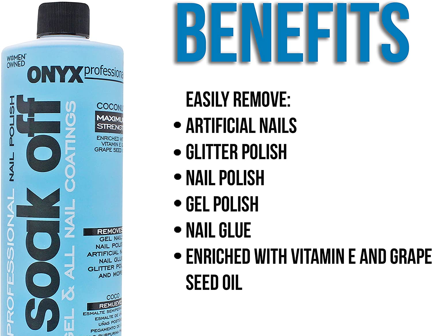 Removes nail polish, shellac polish, gel polish, artificial nails, nail glue, glitter polish & more. Maximum strength formulation enriched with vitamin e & grape seed oil. 16 Fl Oz bottle also includes a nail file. Can be used on natural or fake nails.Free from parabens, never tested on animals and made in the USA.
