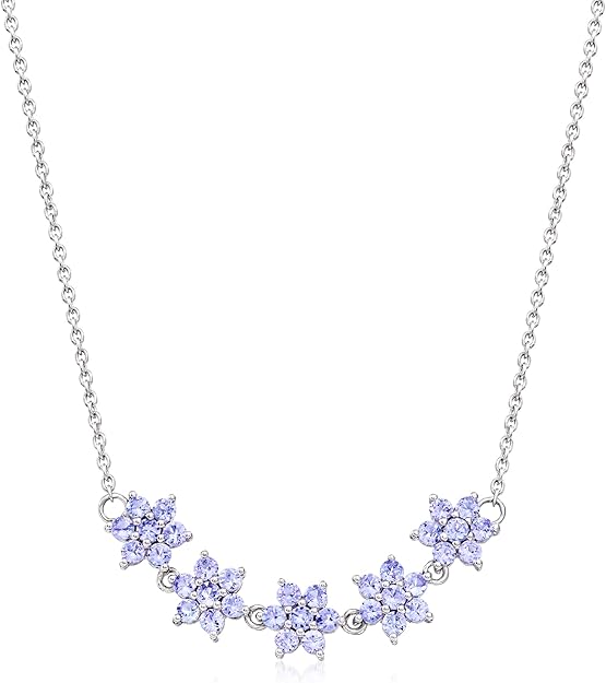Ross-Simons 3.80 ct. t.w. Tanzanite Floral Necklace in Sterling Silver. 18 inches