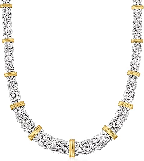 Ross-Simons Graduated Byzantine Necklace in Sterling Silver and 14kt Yellow Gold